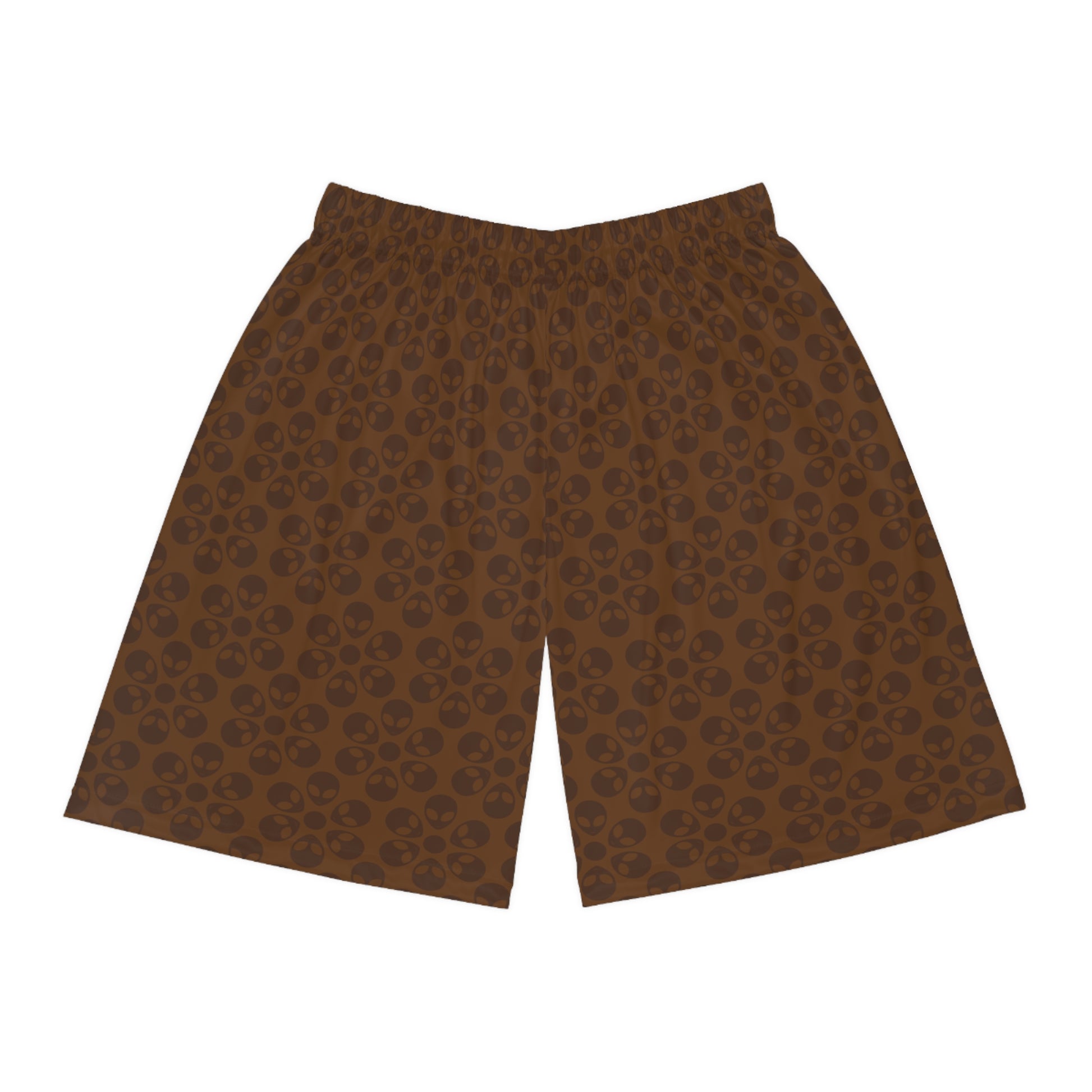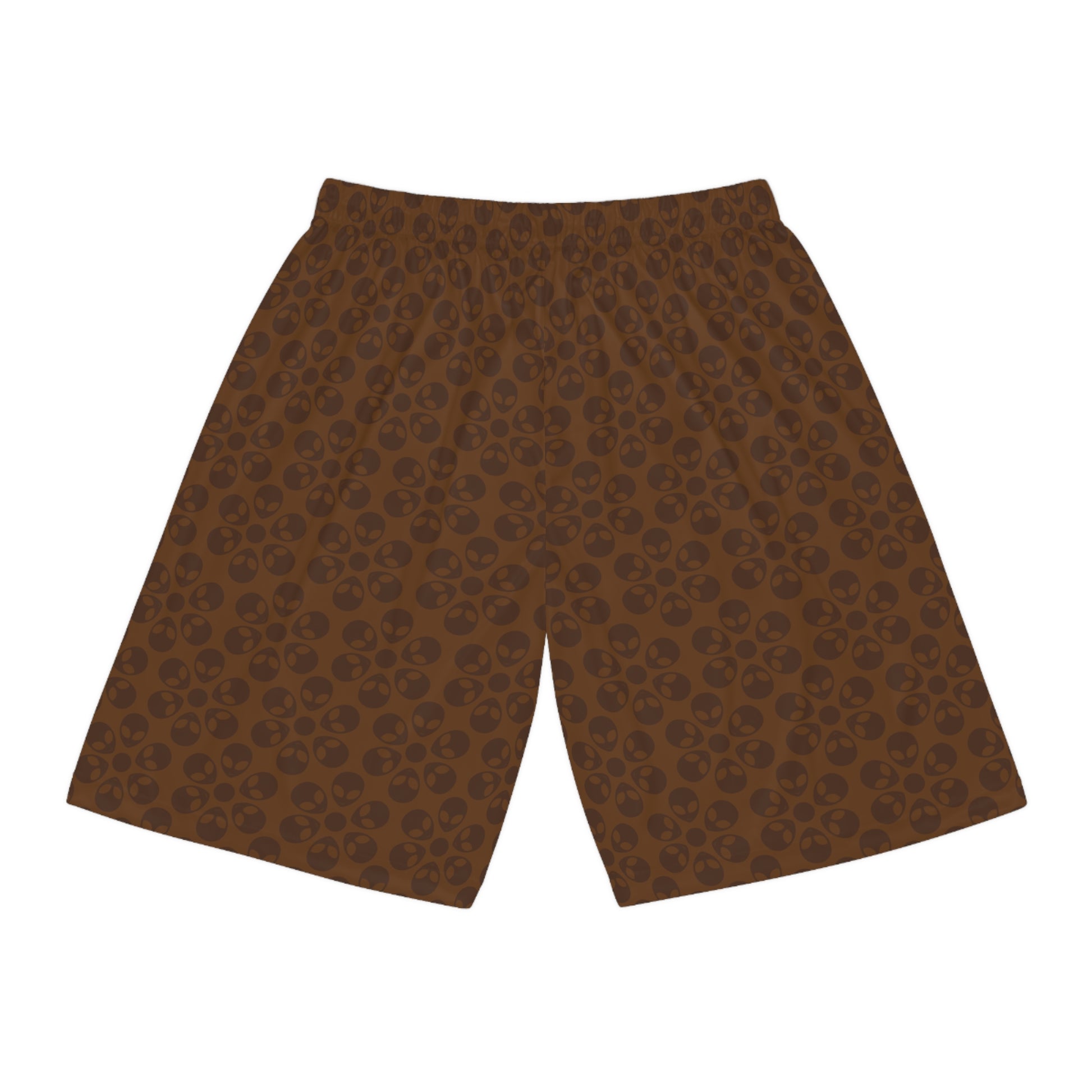 Trendy Skull Pattern Basketball Shorts Summer Activewear Sports Apparel Casual Wear Beach Shorts Gift for Basketball Lovers Alien Flowers Brown