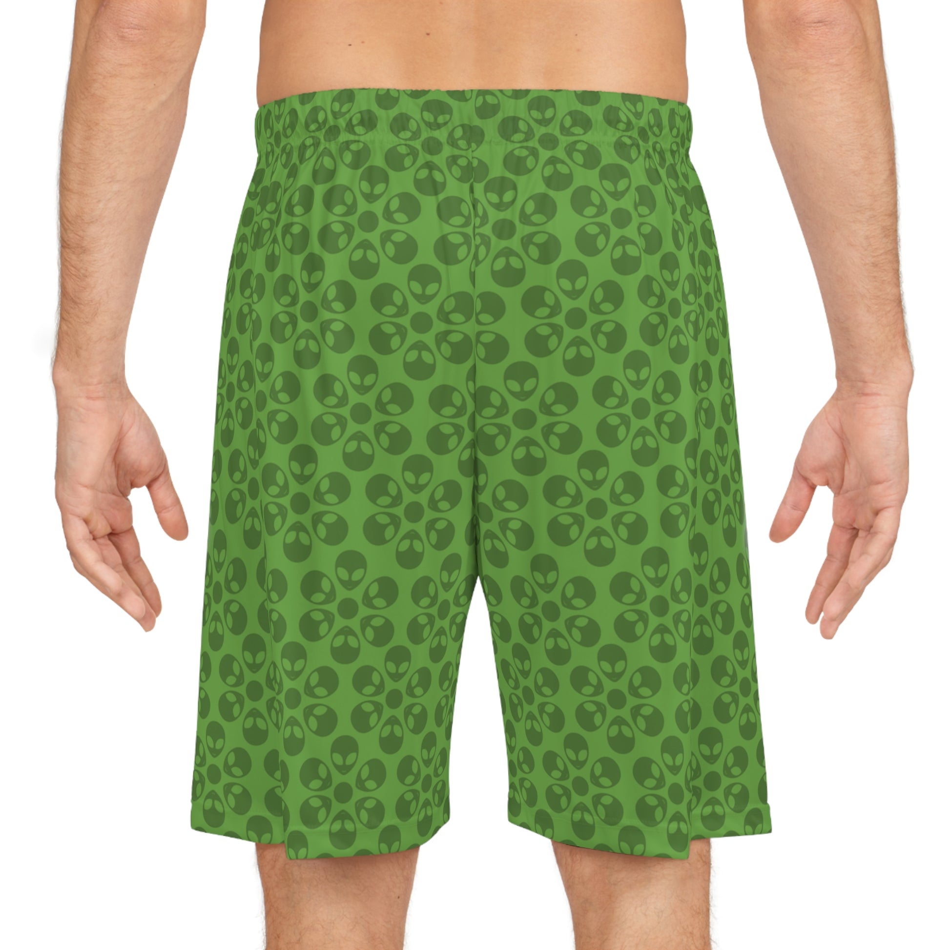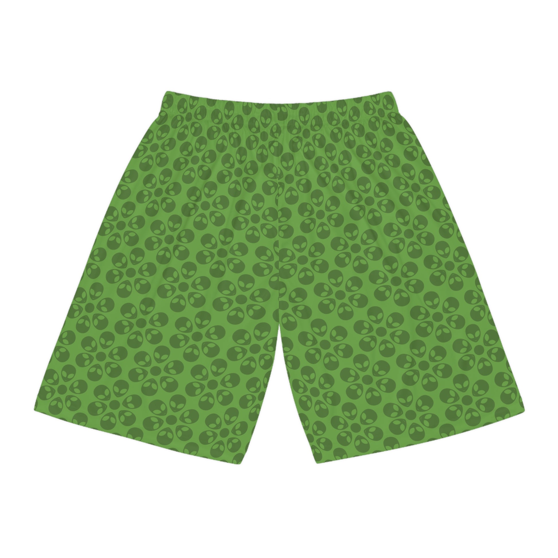 Trendy Skull Pattern Basketball Shorts Summer Activewear Sports Apparel Casual Wear Beach Shorts Gift for Basketball Lovers Alien Flowers Green