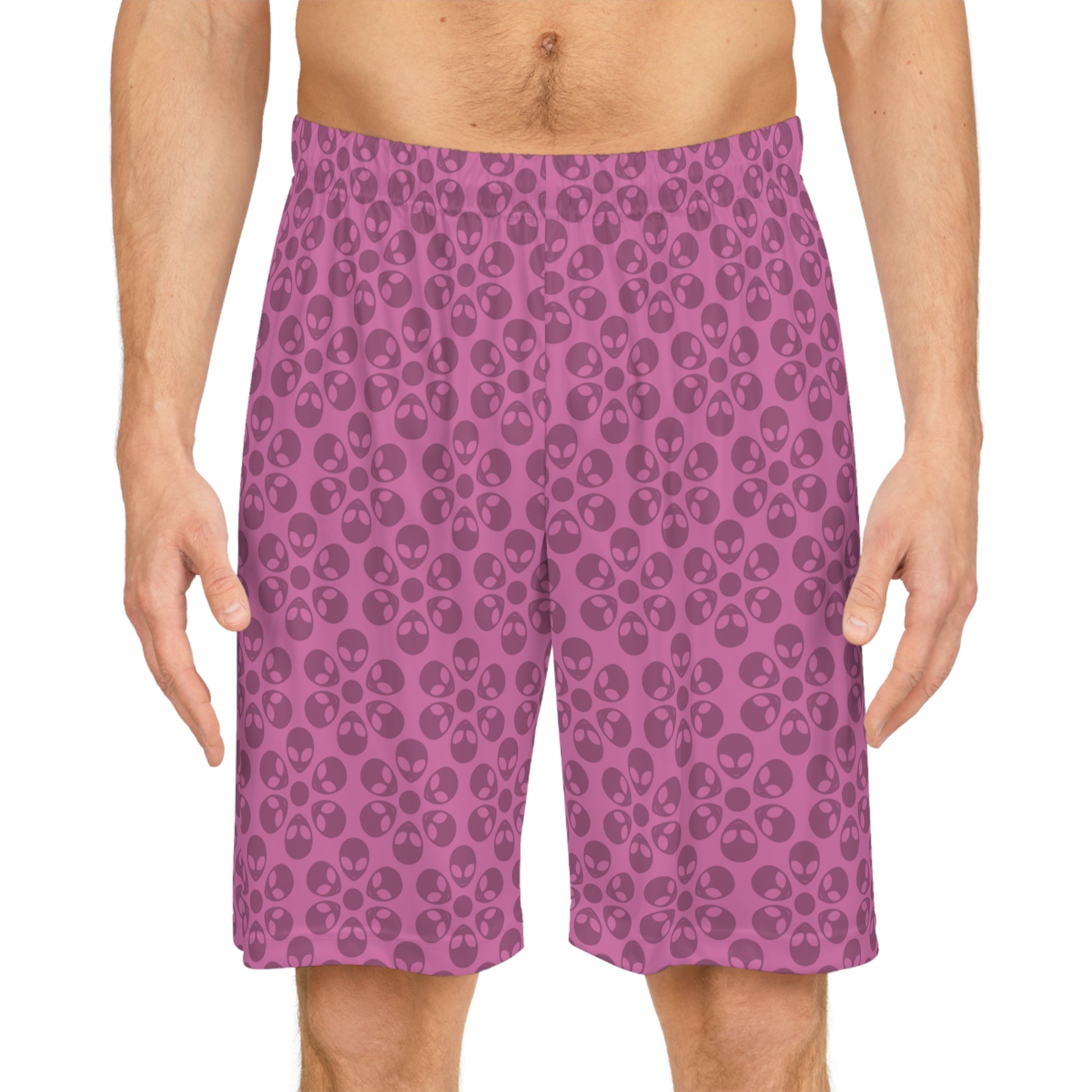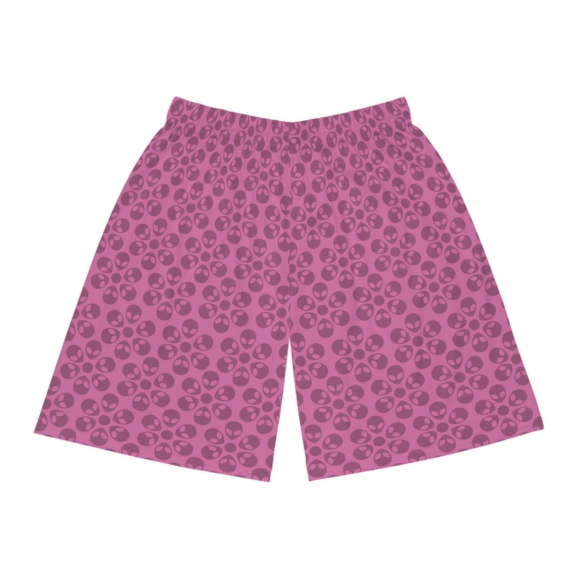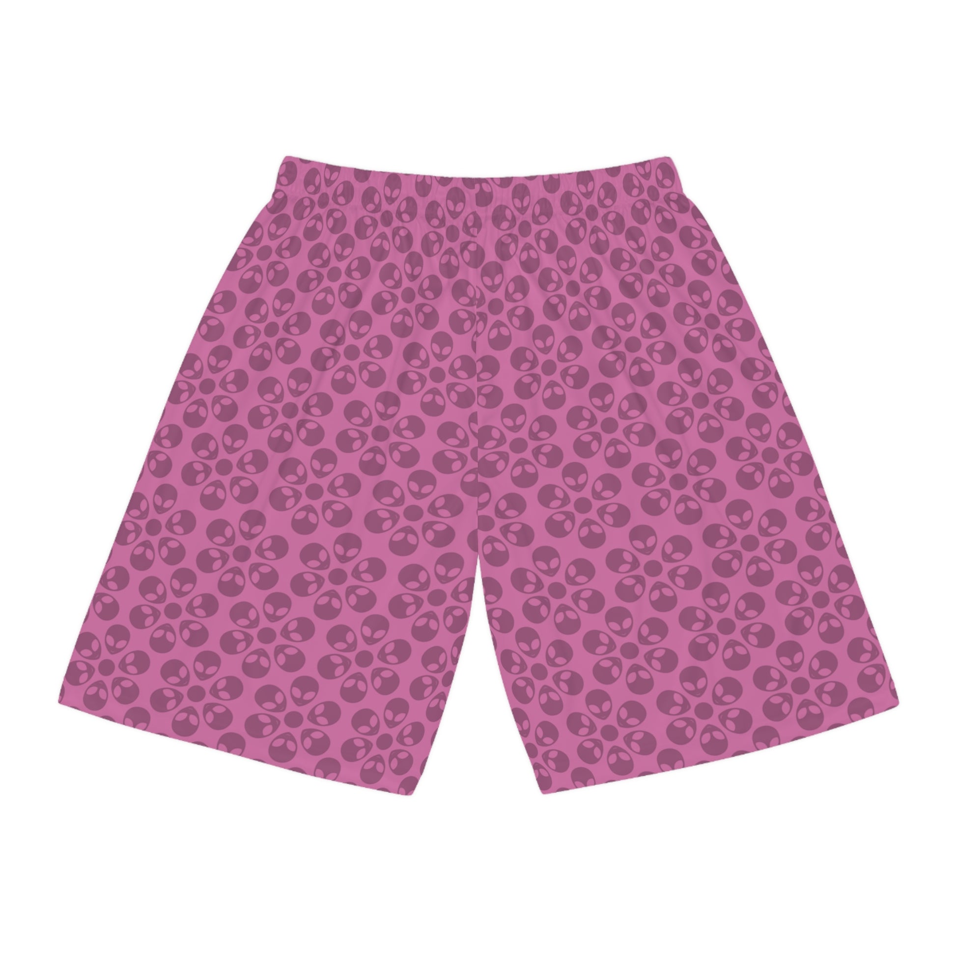 Trendy Skull Pattern Basketball Shorts Summer Activewear Sports Apparel Casual Wear Beach Shorts Gift for Basketball Lovers Alien Flowers Light Pink