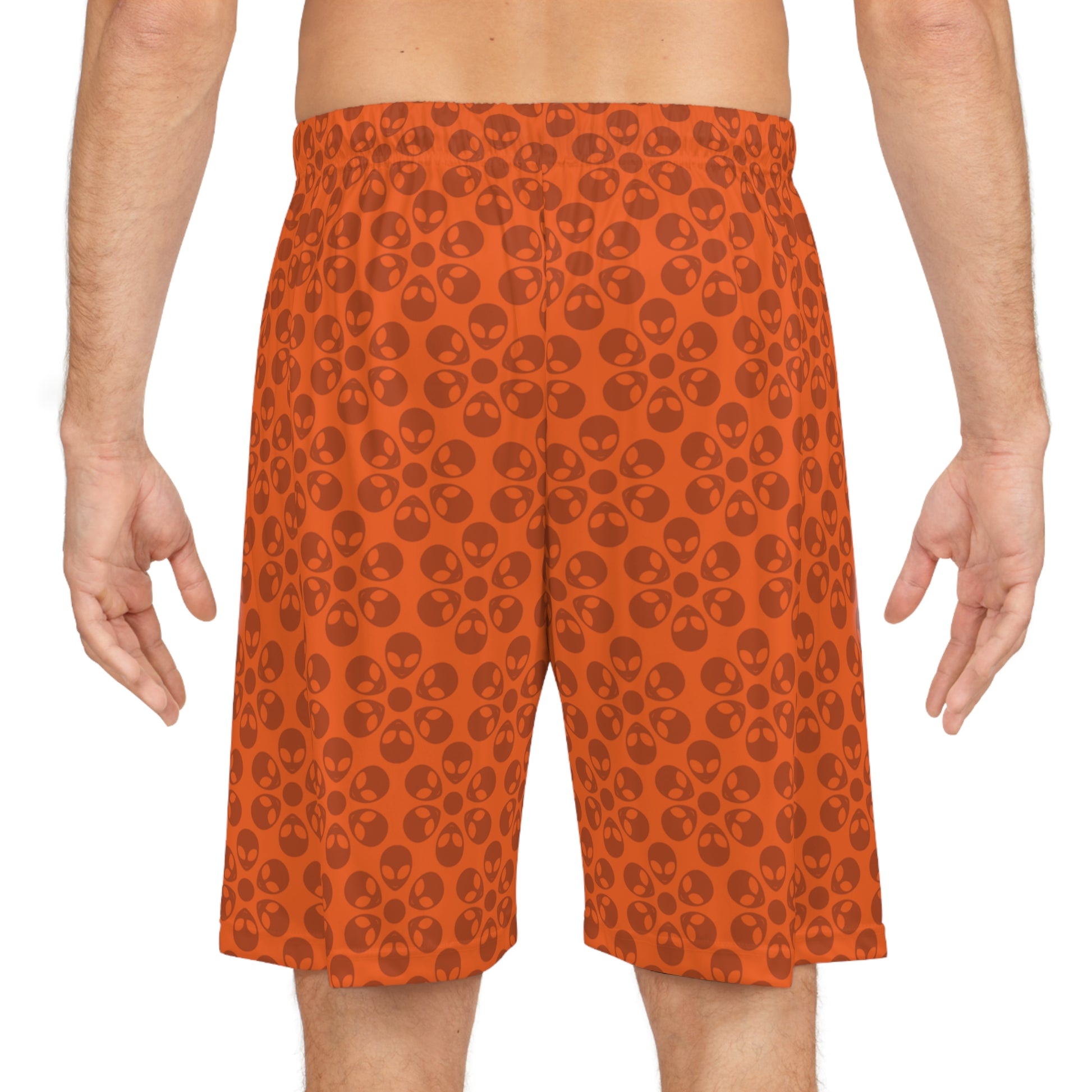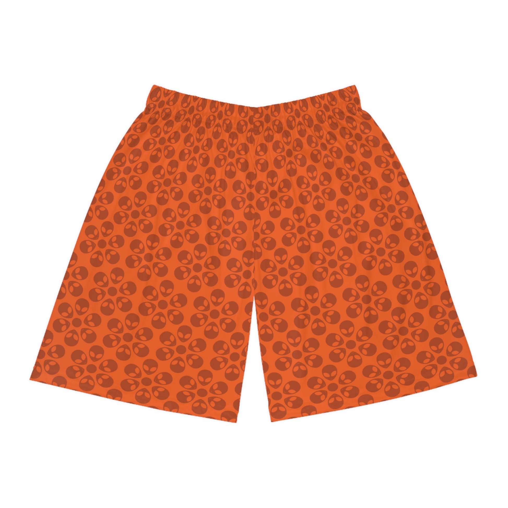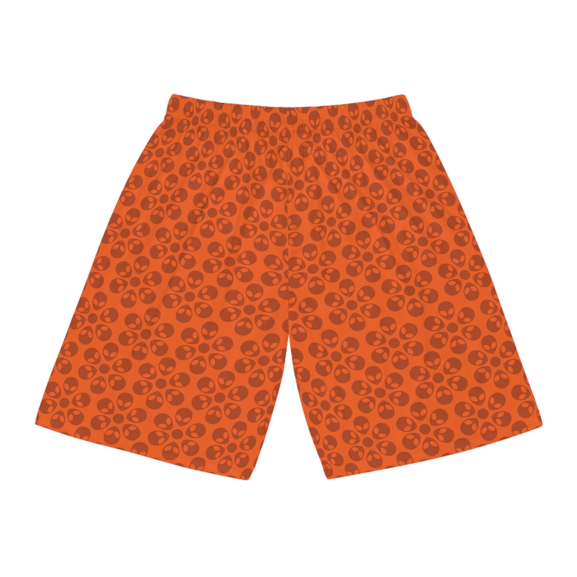 Trendy Skull Pattern Basketball Shorts Summer Activewear Sports Apparel Casual Wear Beach Shorts Gift for Basketball Lovers Alien Flowers Orange