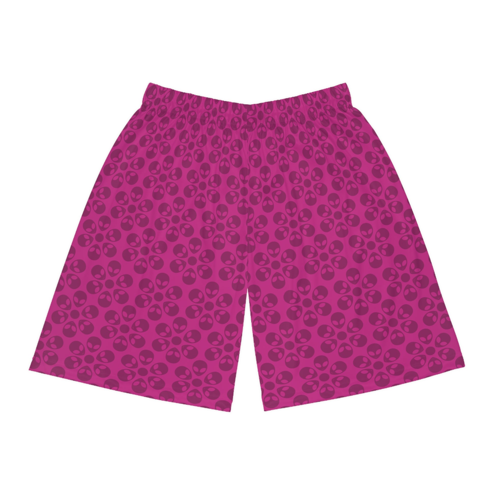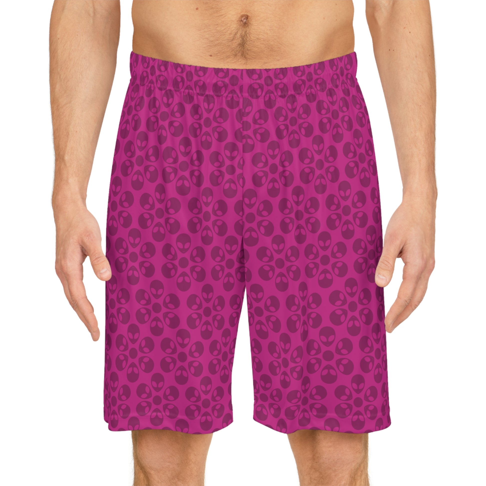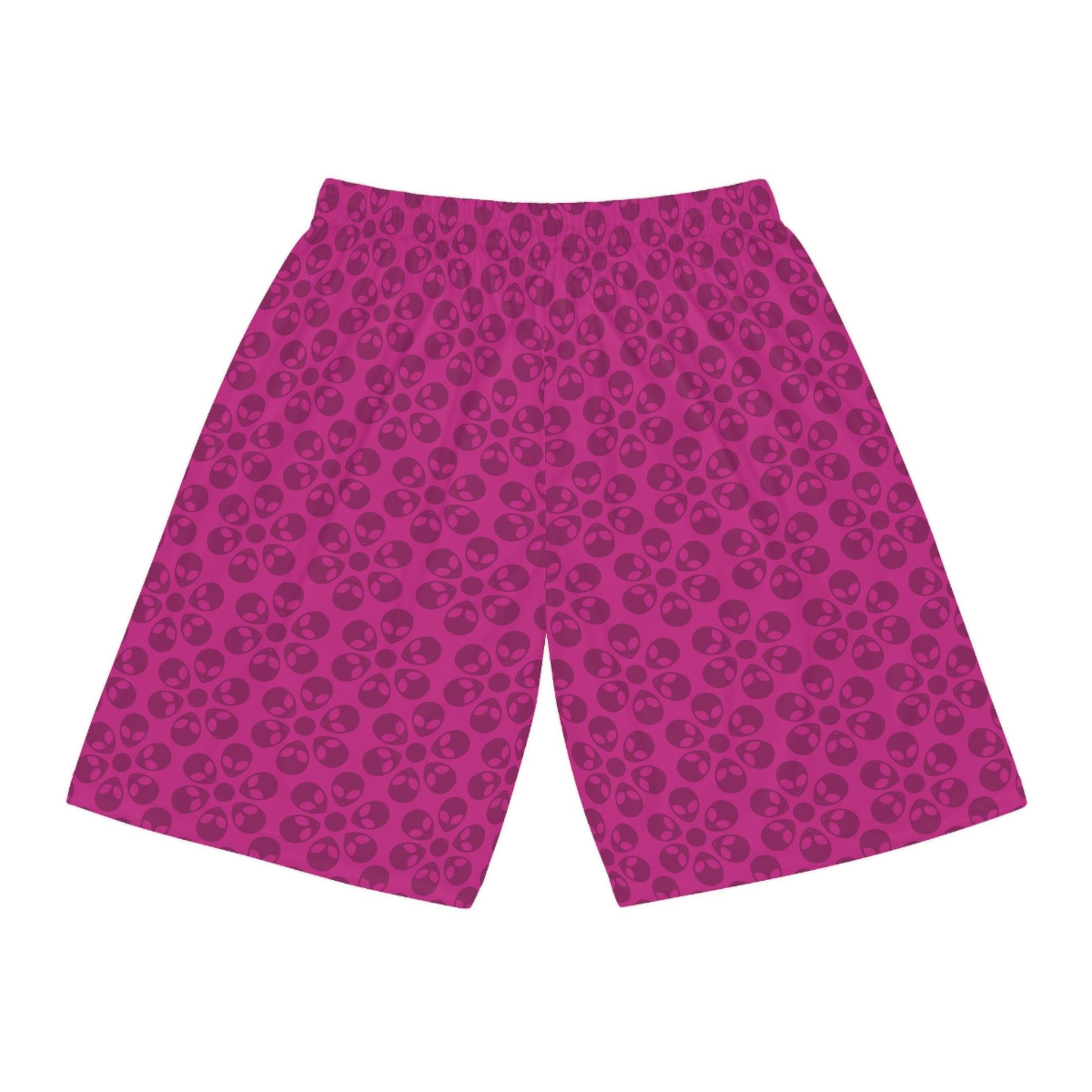 Trendy Skull Pattern Basketball Shorts Summer Activewear Sports Apparel Casual Wear Beach Shorts Gift for Basketball Lovers Alien Flowers Pink