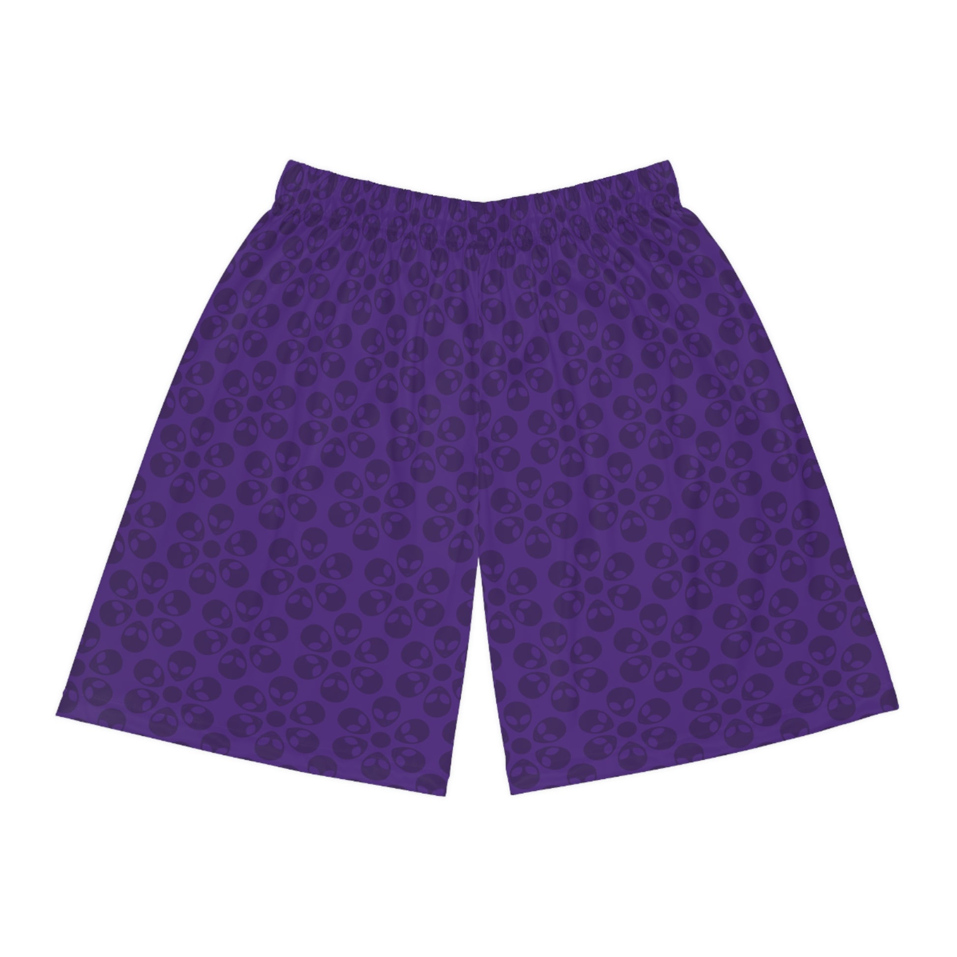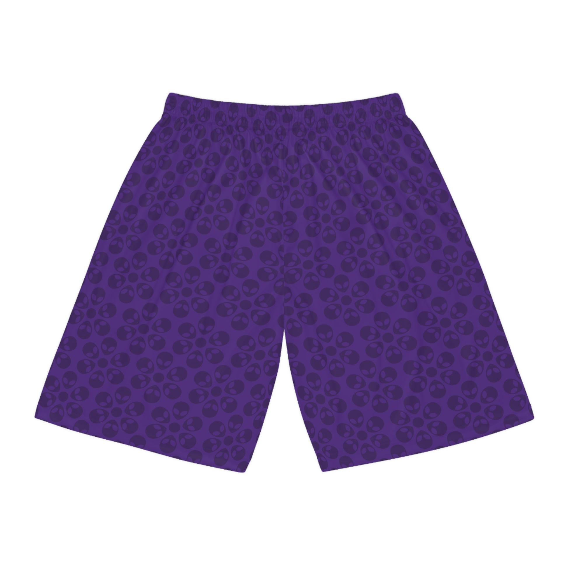 Trendy Skull Pattern Basketball Shorts Summer Activewear Sports Apparel Casual Wear Beach Shorts Gift for Basketball Lovers Alien Flowers Purple