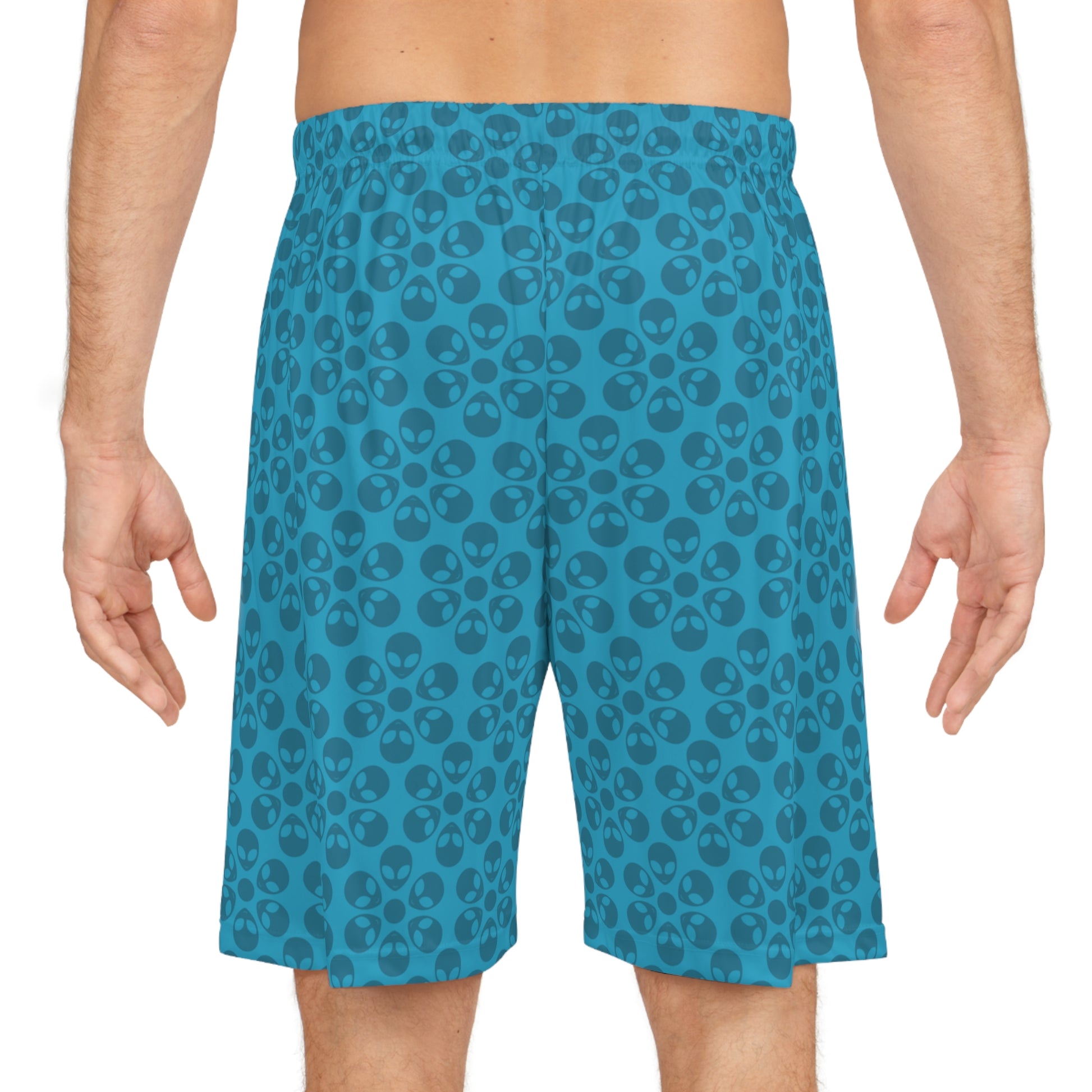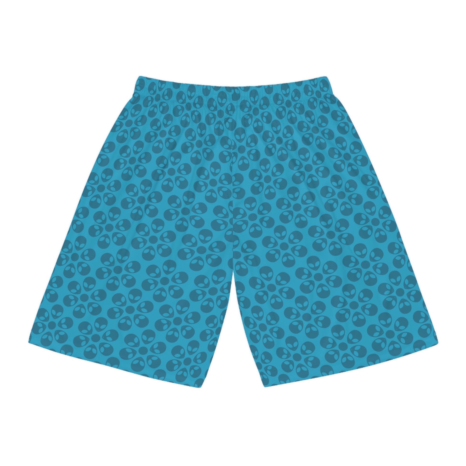 Trendy Skull Pattern Basketball Shorts Summer Activewear Sports Apparel Casual Wear Beach Shorts Gift for Basketball Lovers Alien Flowers Turquoise