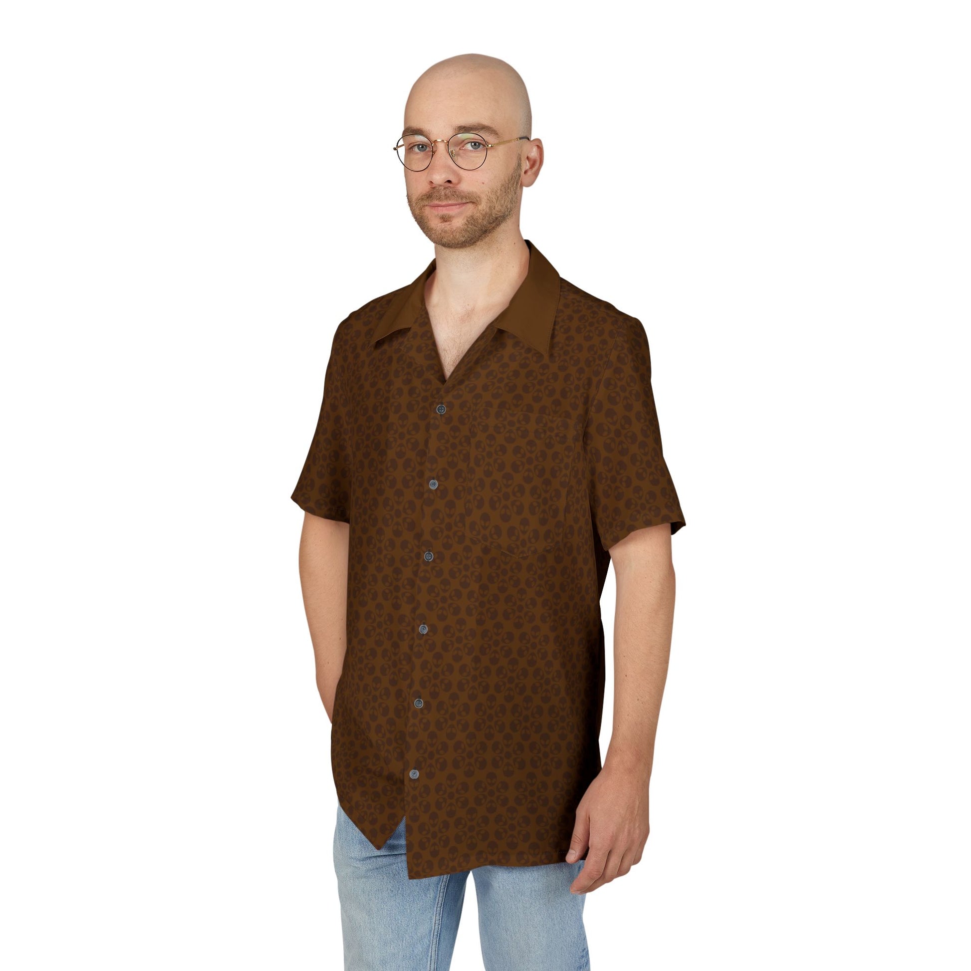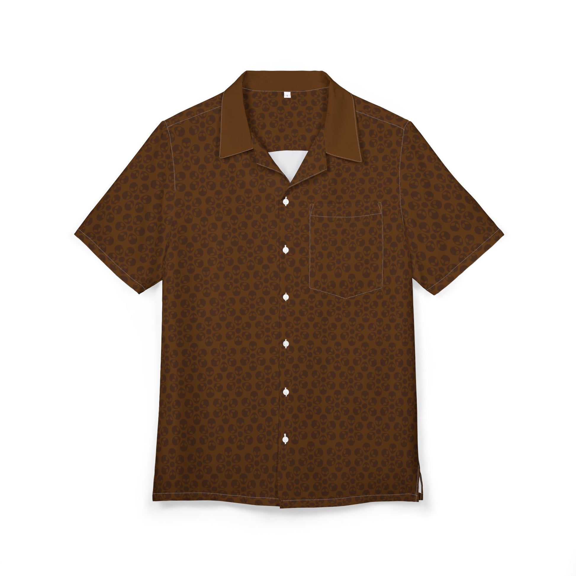 Unisex Hawaiian ButtonDown Shirt Tropical Vibe Summer Apparel Beachwear Vacation Outfit Casual Wear Alien Flowers Brown