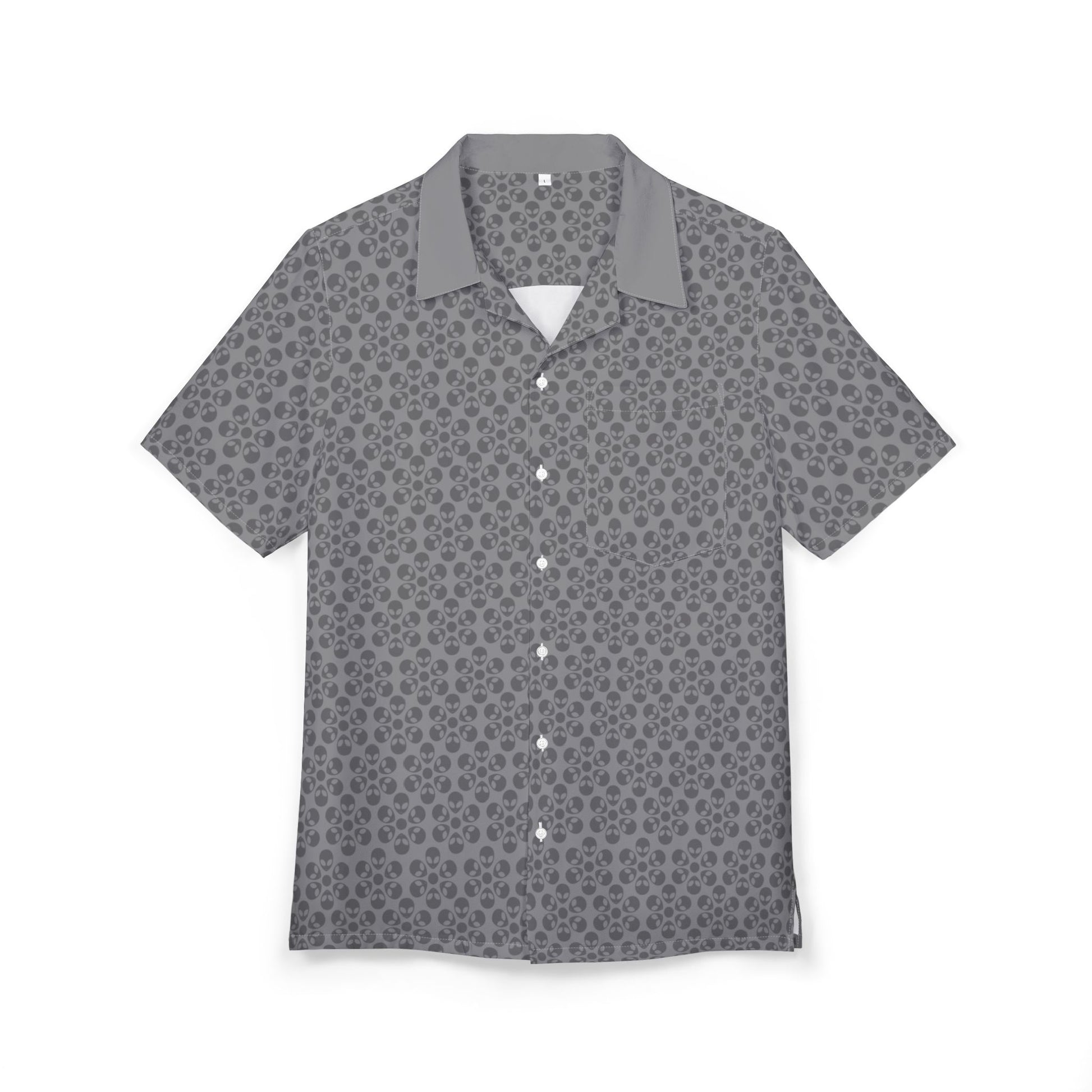 Unisex Hawaiian ButtonDown Shirt Tropical Vibe Summer Apparel Beachwear Vacation Outfit Casual Wear Alien Flowers Grey