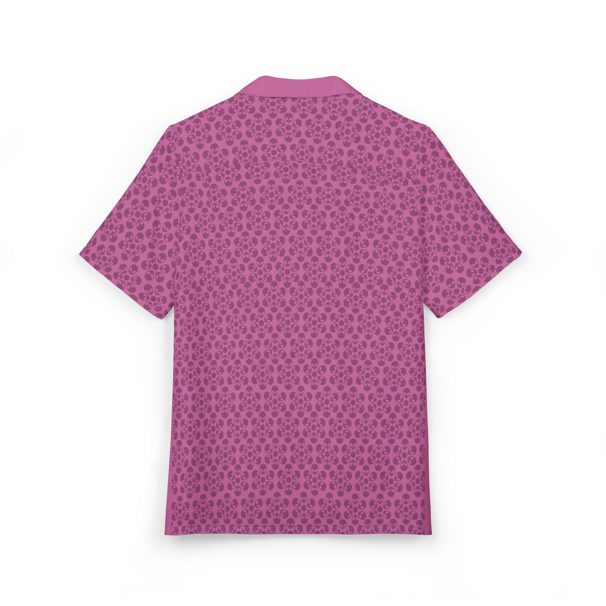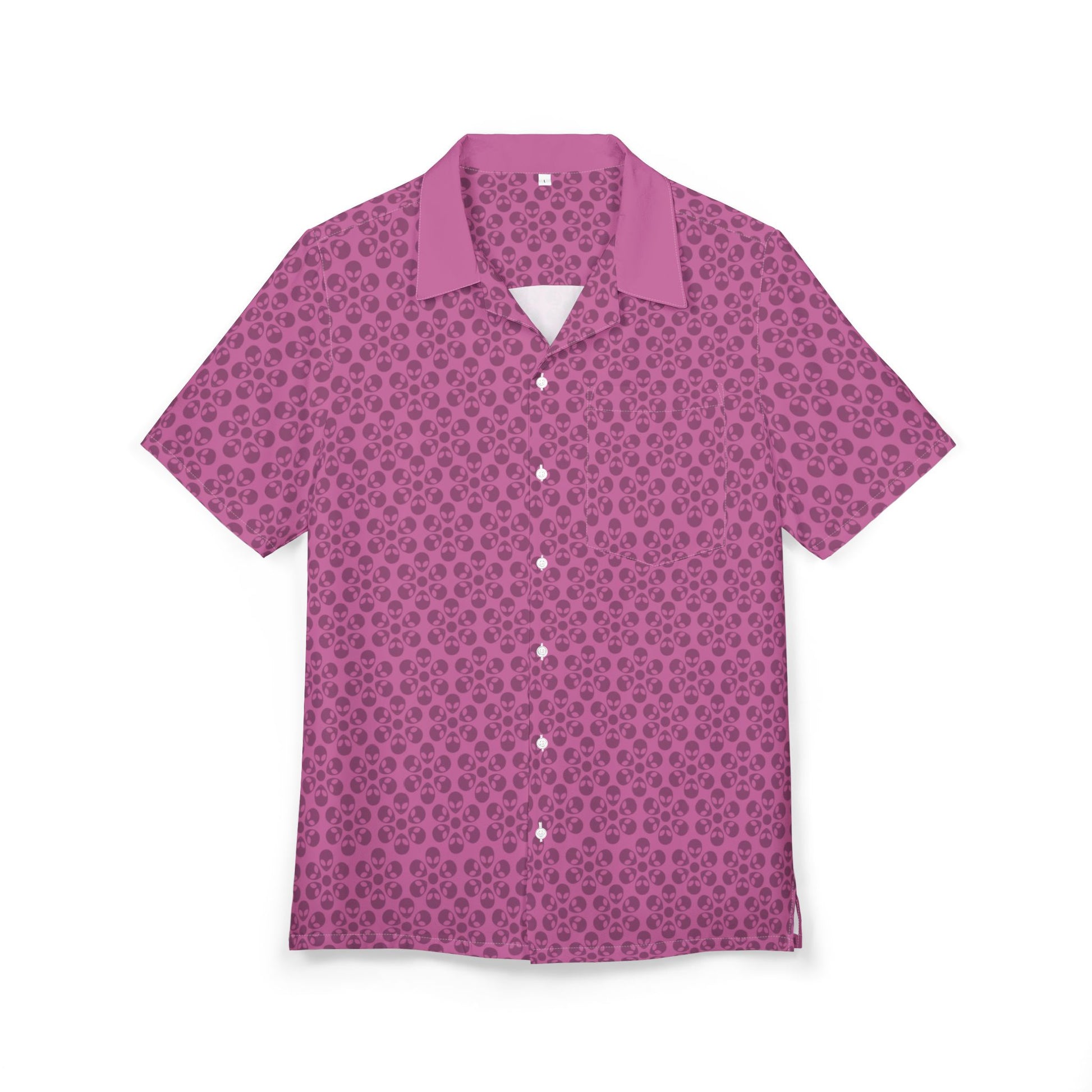 Unisex Hawaiian ButtonDown Shirt Tropical Vibe Summer Apparel Beachwear Vacation Outfit Casual Wear Alien Flowers Light Pink