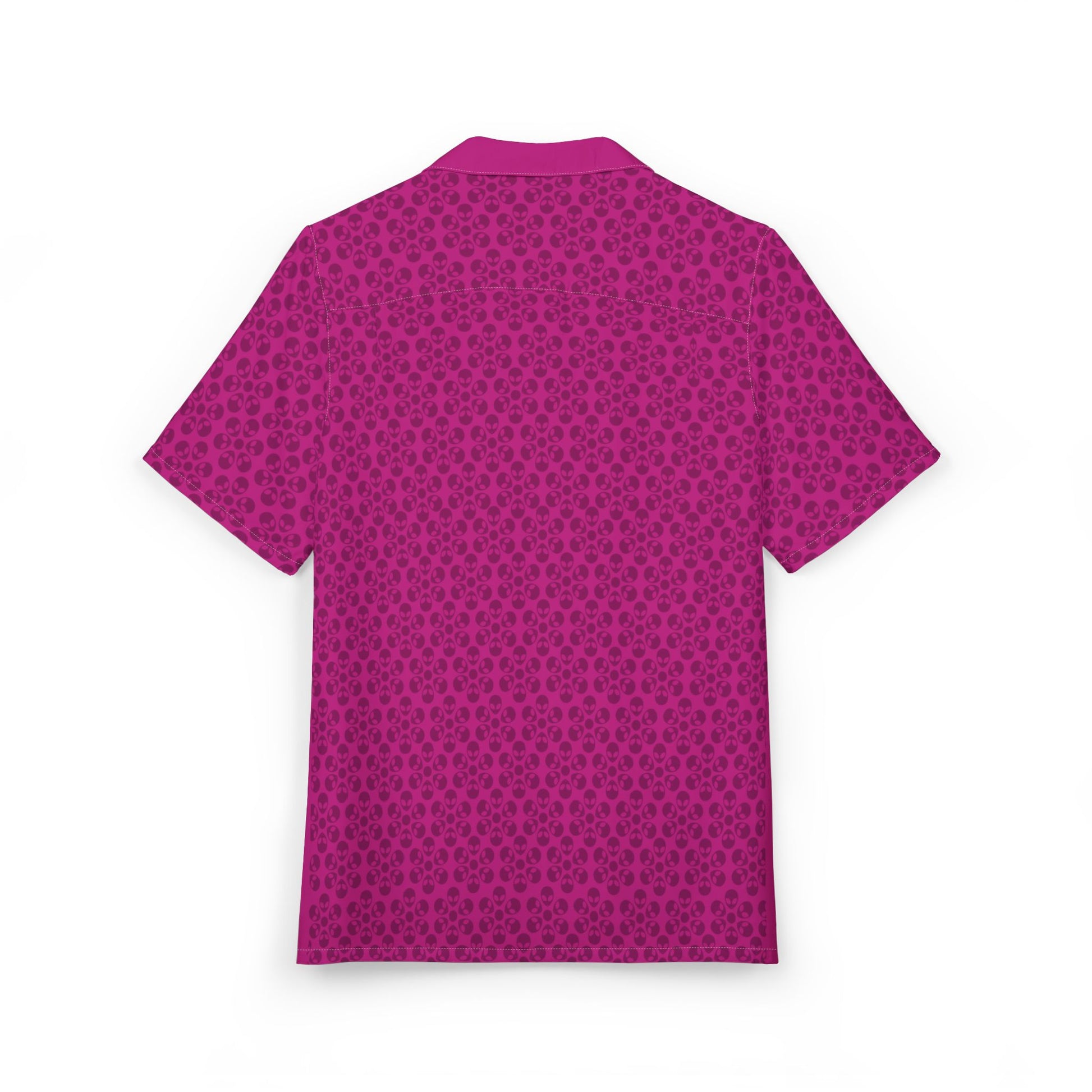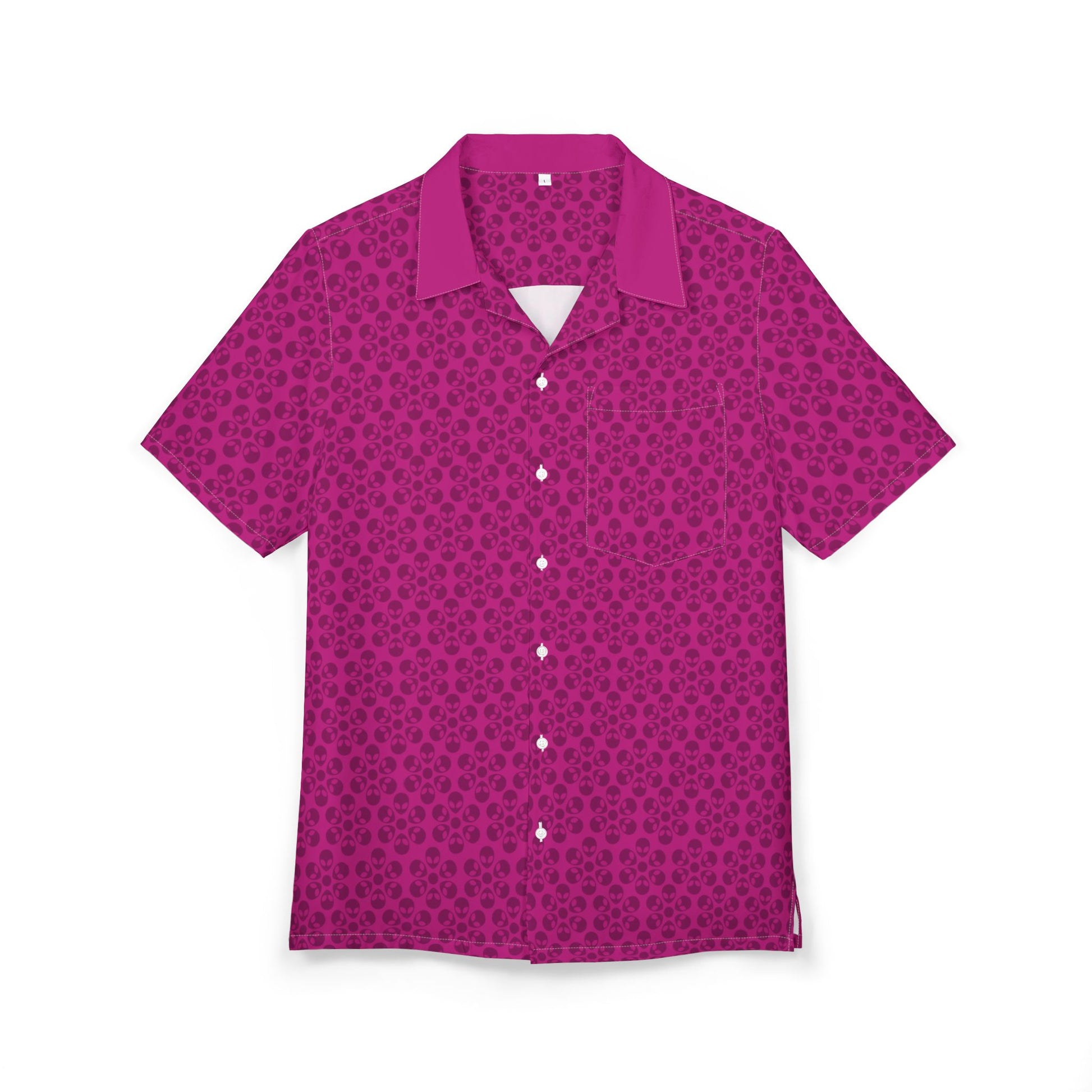 Unisex Hawaiian ButtonDown Shirt Tropical Vibe Summer Apparel Beachwear Vacation Outfit Casual Wear Alien Flowers Pink
