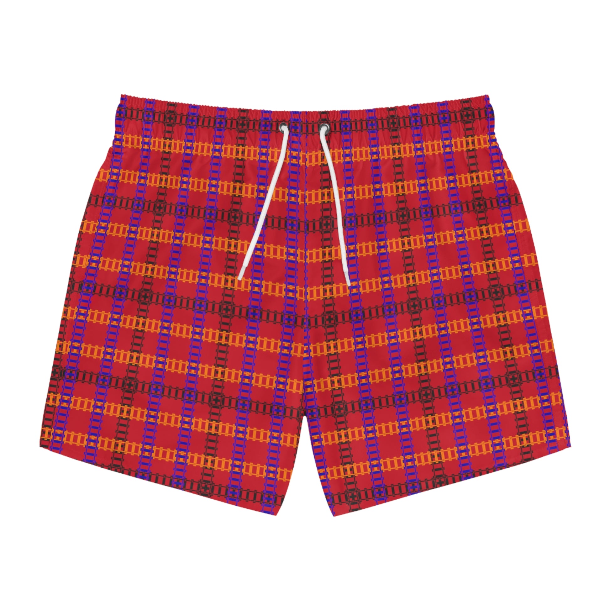 Vibrant Checkered Swim Trunks Beachwear for Summer Fun Vacation Essential Pool Party MustHave Mens Swim Shorts Train Tracks Dark Red