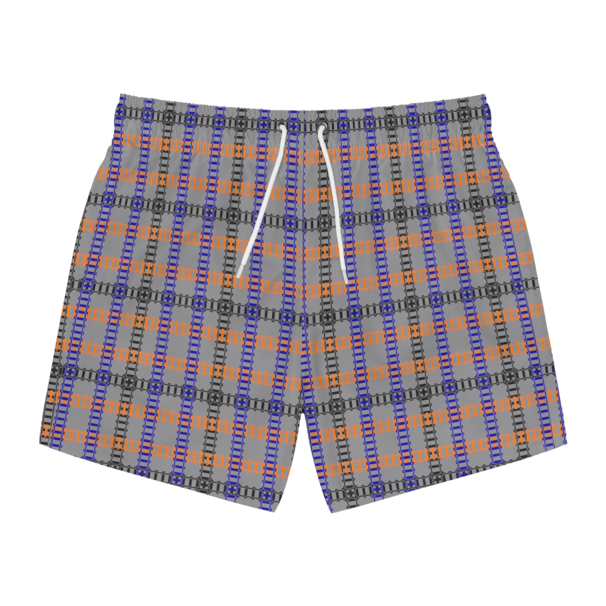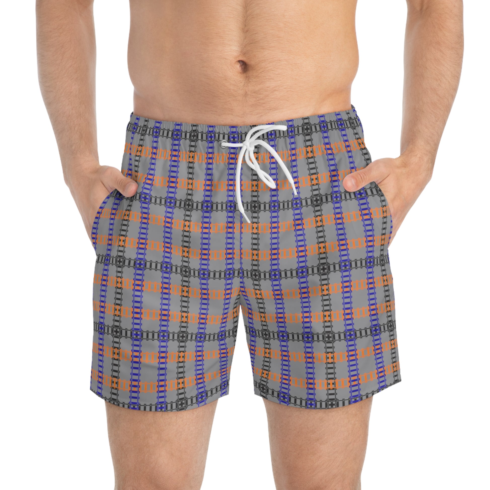 Vibrant Checkered Swim Trunks Beachwear for Summer Fun Vacation Essential Pool Party MustHave Mens Swim Shorts Train Tracks Grey
