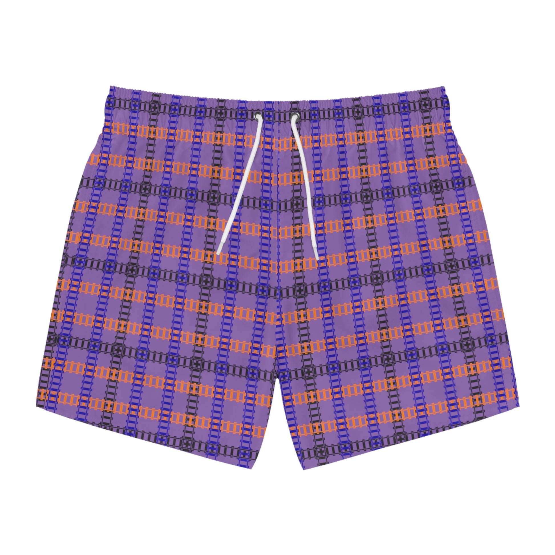 Vibrant Checkered Swim Trunks Beachwear for Summer Fun Vacation Essential Pool Party MustHave Mens Swim Shorts Train Tracks Light Purple