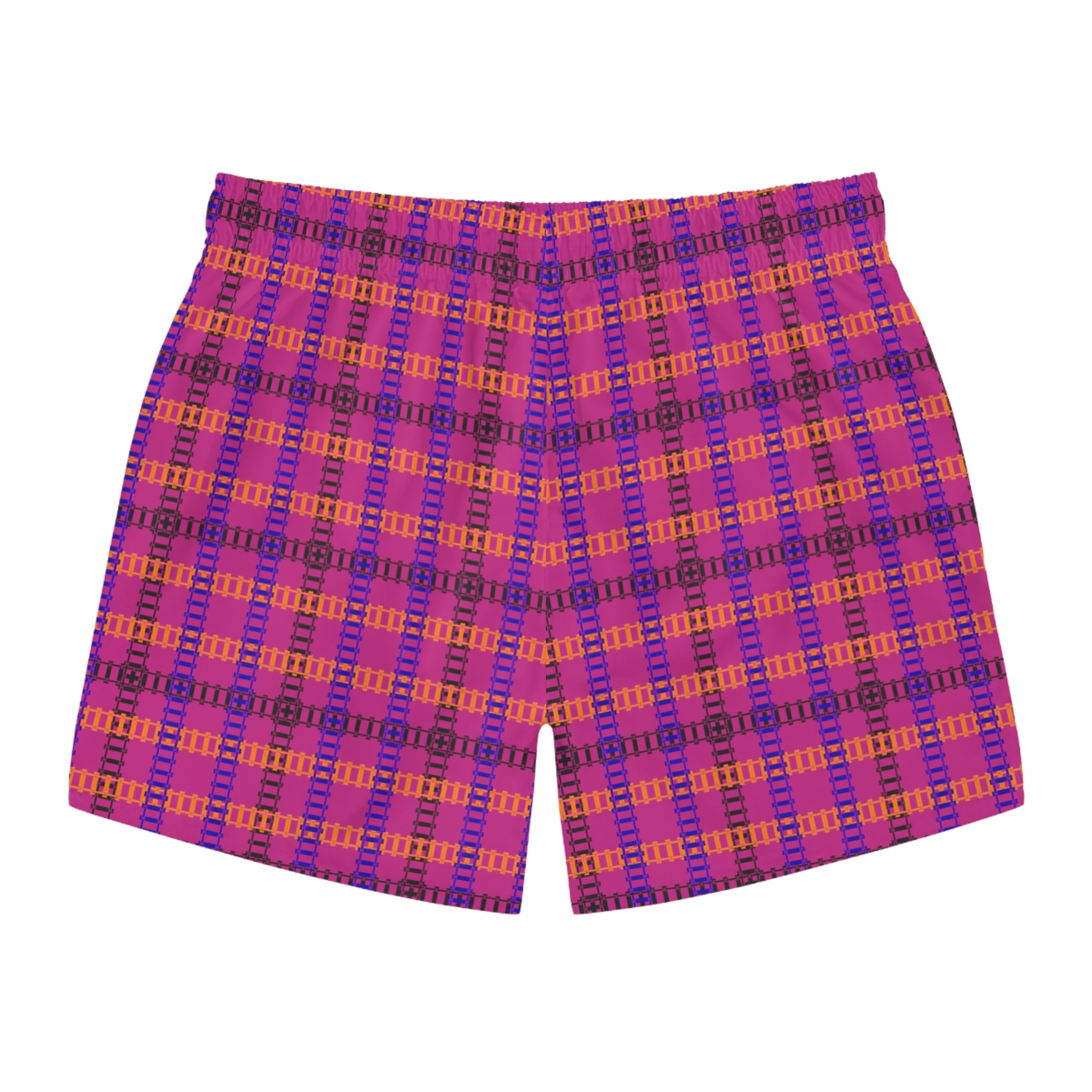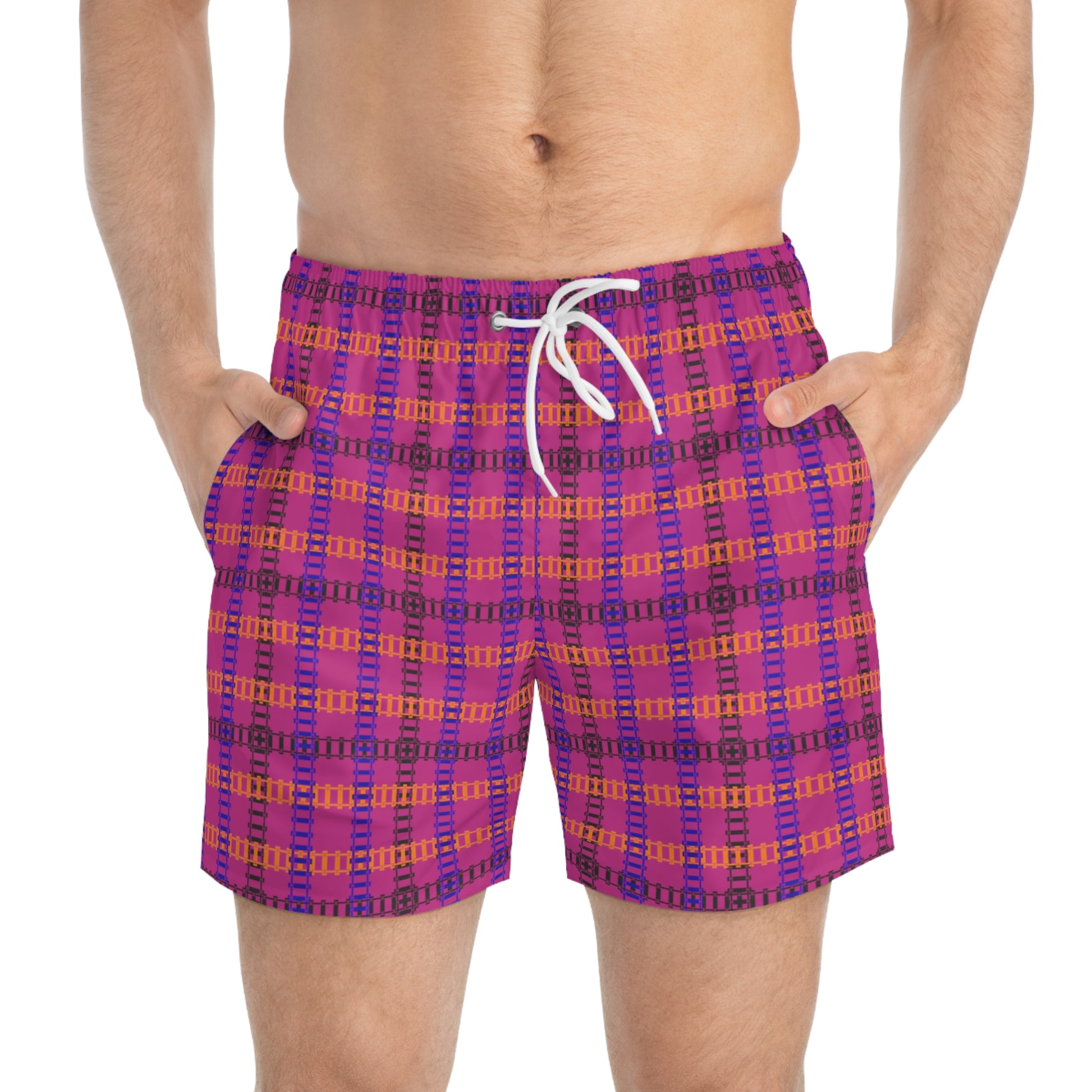 Vibrant Checkered Swim Trunks Beachwear for Summer Fun Vacation Essential Pool Party MustHave Mens Swim Shorts Train Tracks Pink