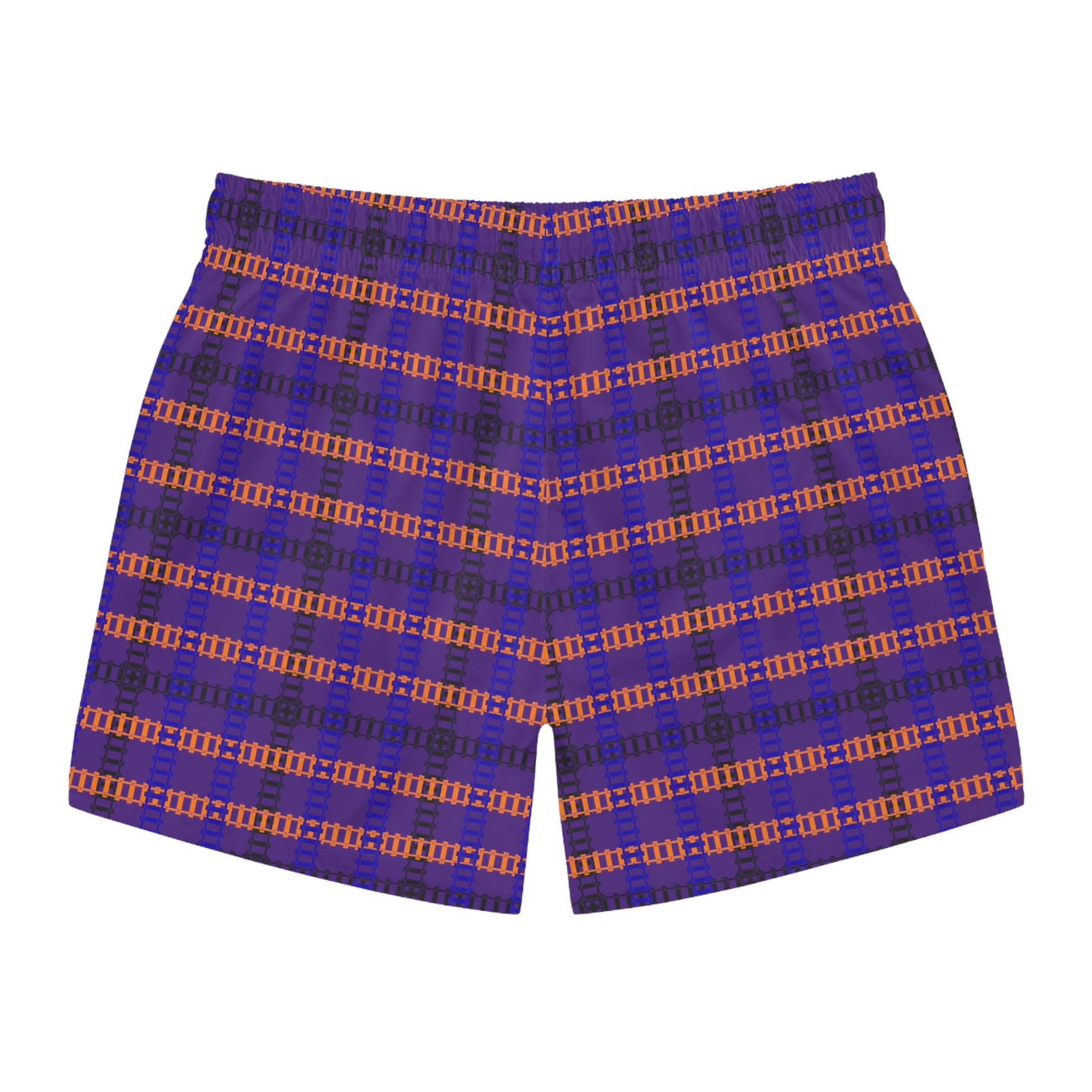 Vibrant Checkered Swim Trunks Beachwear for Summer Fun Vacation Essential Pool Party MustHave Mens Swim Shorts Train Tracks Purple