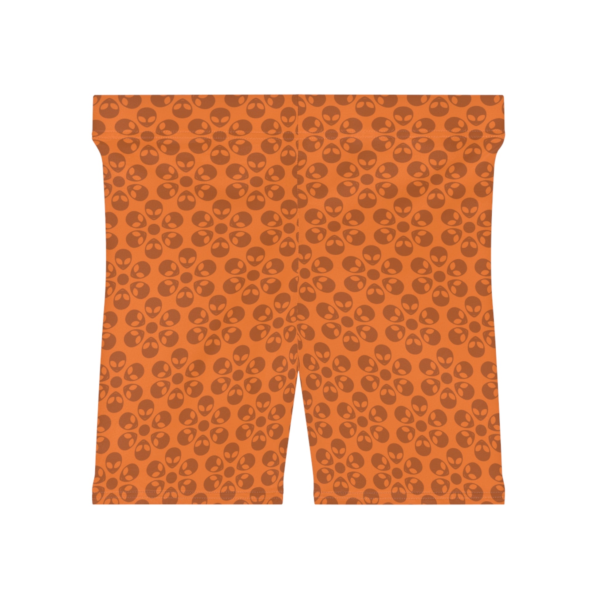 Womens Alien Pattern Biker Shorts Trendy Activewear Casual Cycling Shorts Festival Outfit Summer Essentials Alien Flowers Crusta
