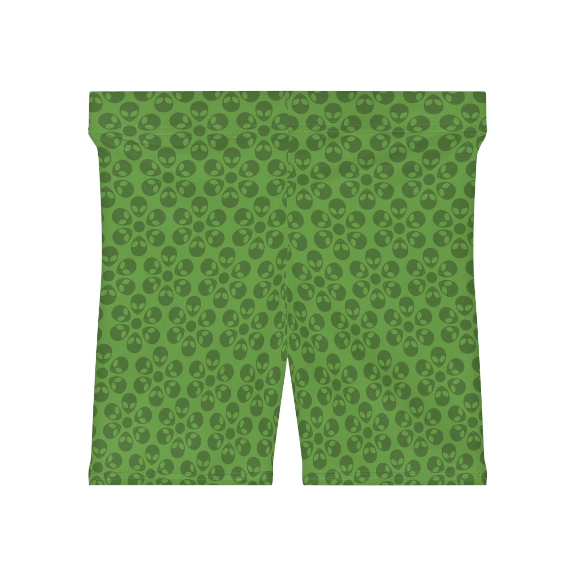 Womens Alien Pattern Biker Shorts Trendy Activewear Casual Cycling Shorts Festival Outfit Summer Essentials Alien Flowers Green