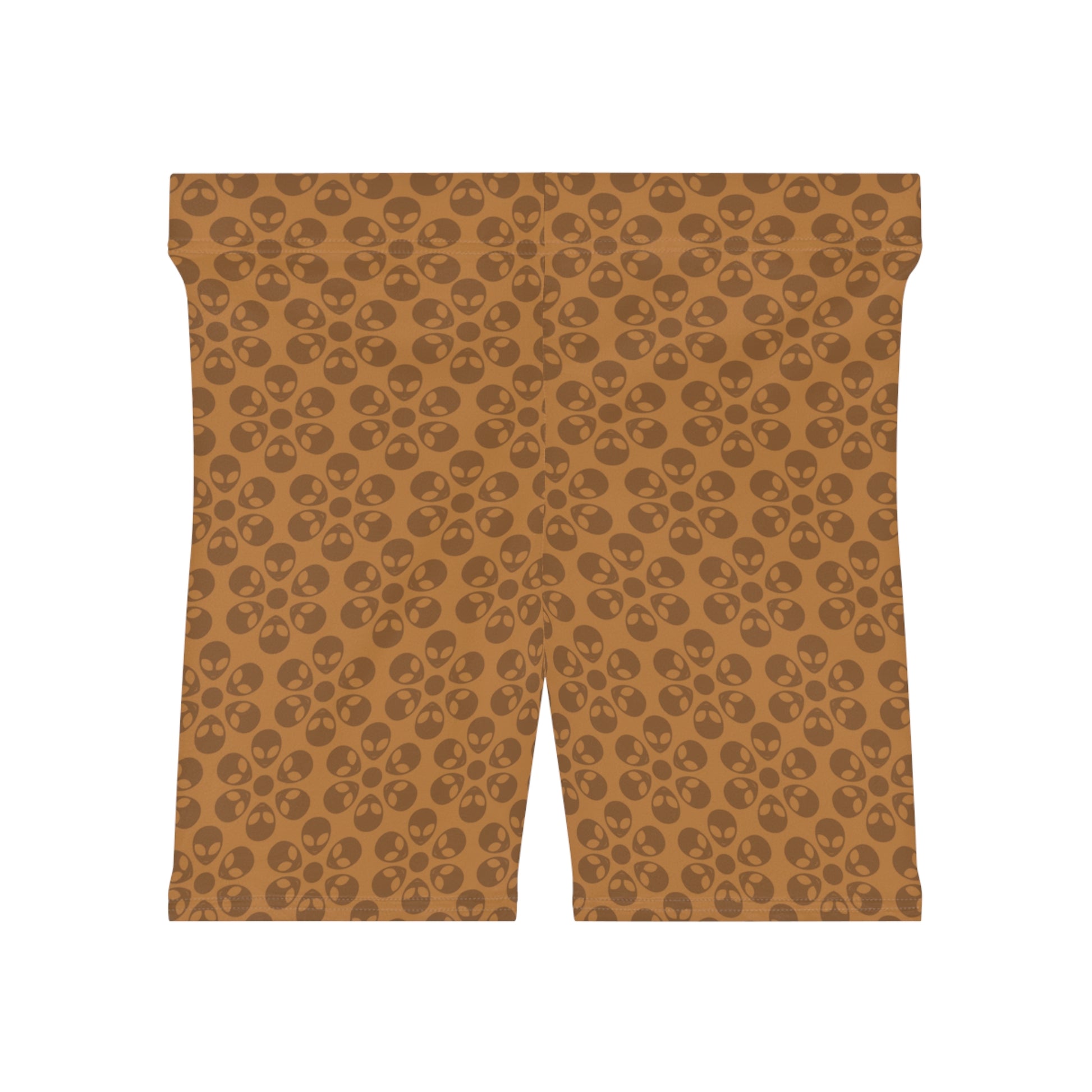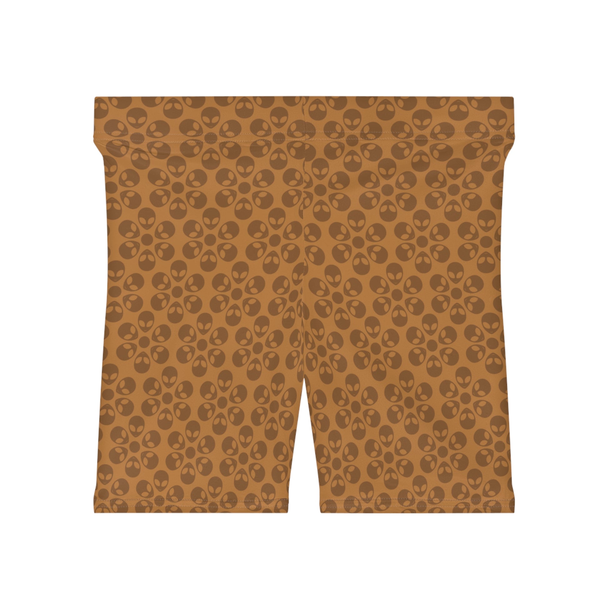 Womens Alien Pattern Biker Shorts Trendy Activewear Casual Cycling Shorts Festival Outfit Summer Essentials Alien Flowers Light Brown