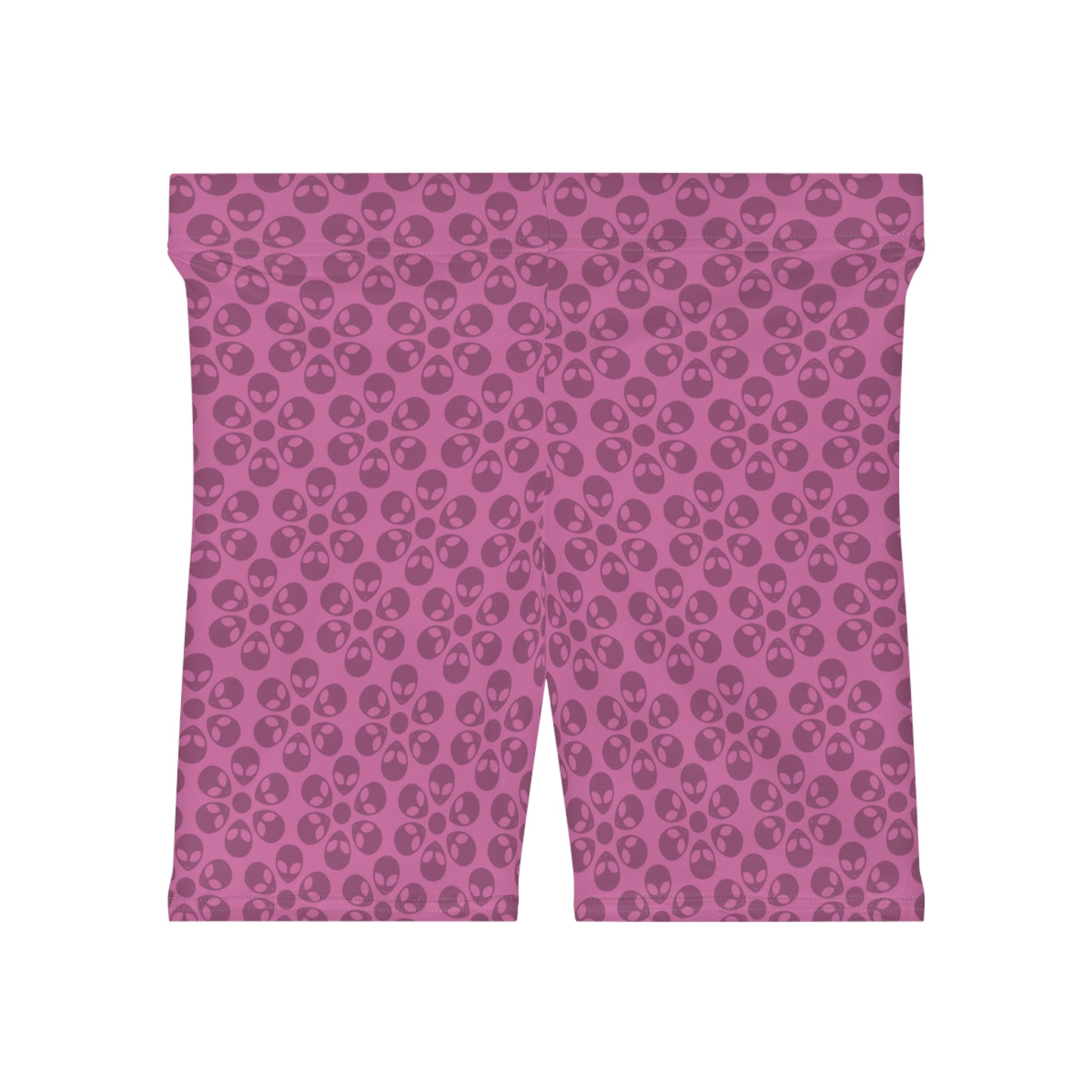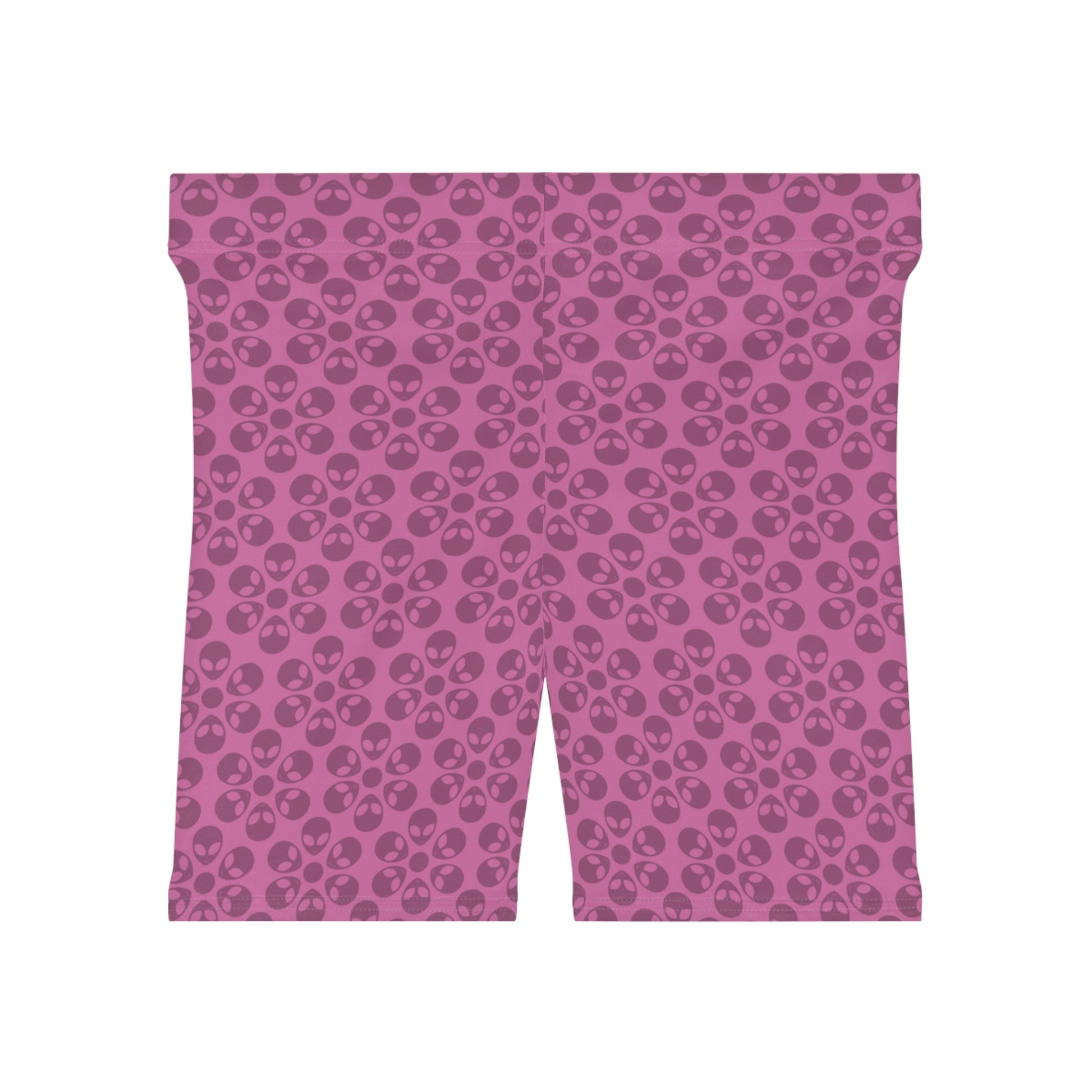 Womens Alien Pattern Biker Shorts Trendy Activewear Casual Cycling Shorts Festival Outfit Summer Essentials Alien Flowers Light Pink