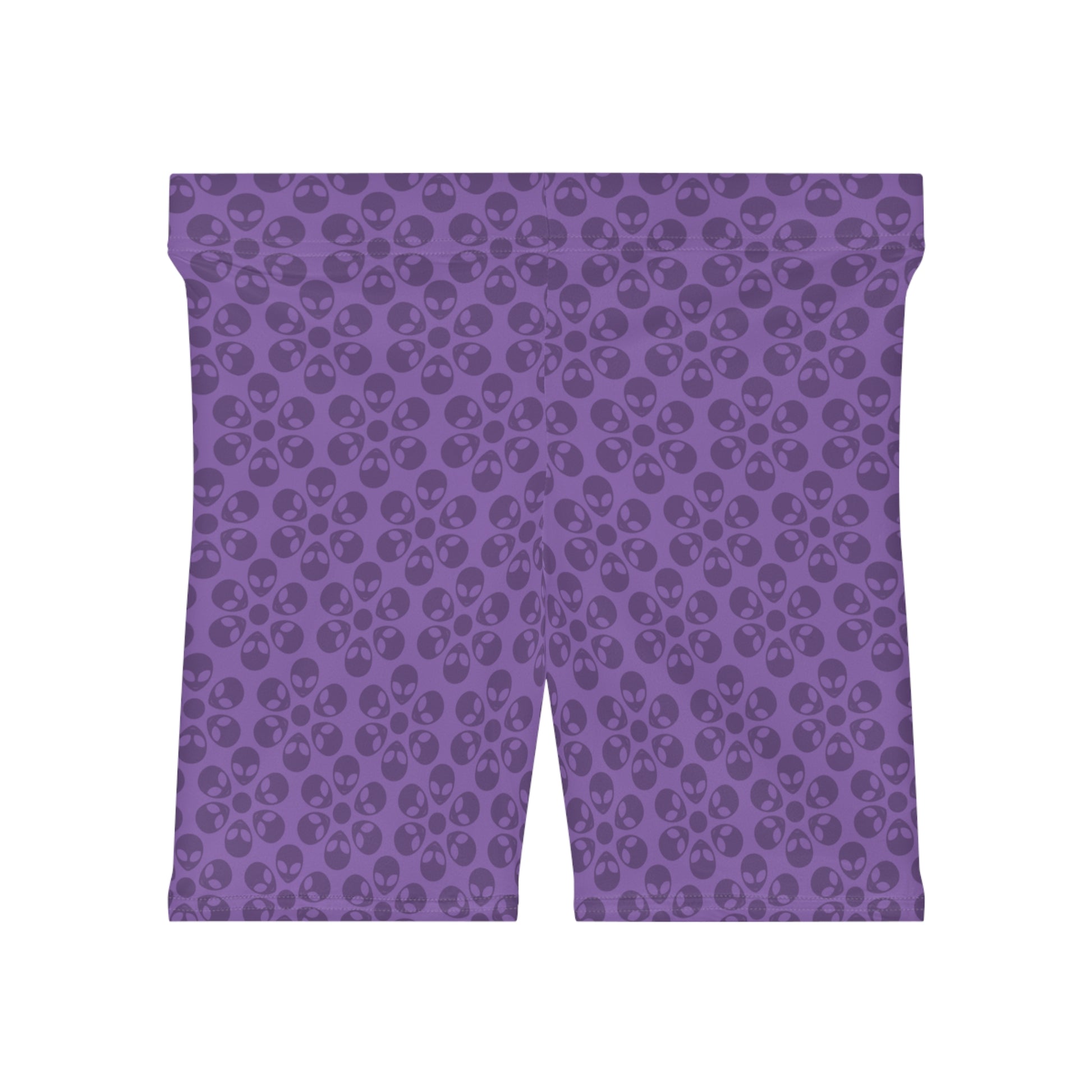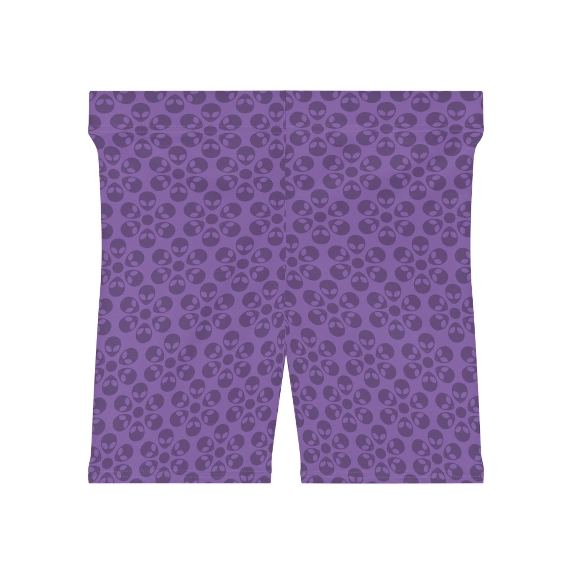 Womens Alien Pattern Biker Shorts Trendy Activewear Casual Cycling Shorts Festival Outfit Summer Essentials Alien Flowers Light Purple