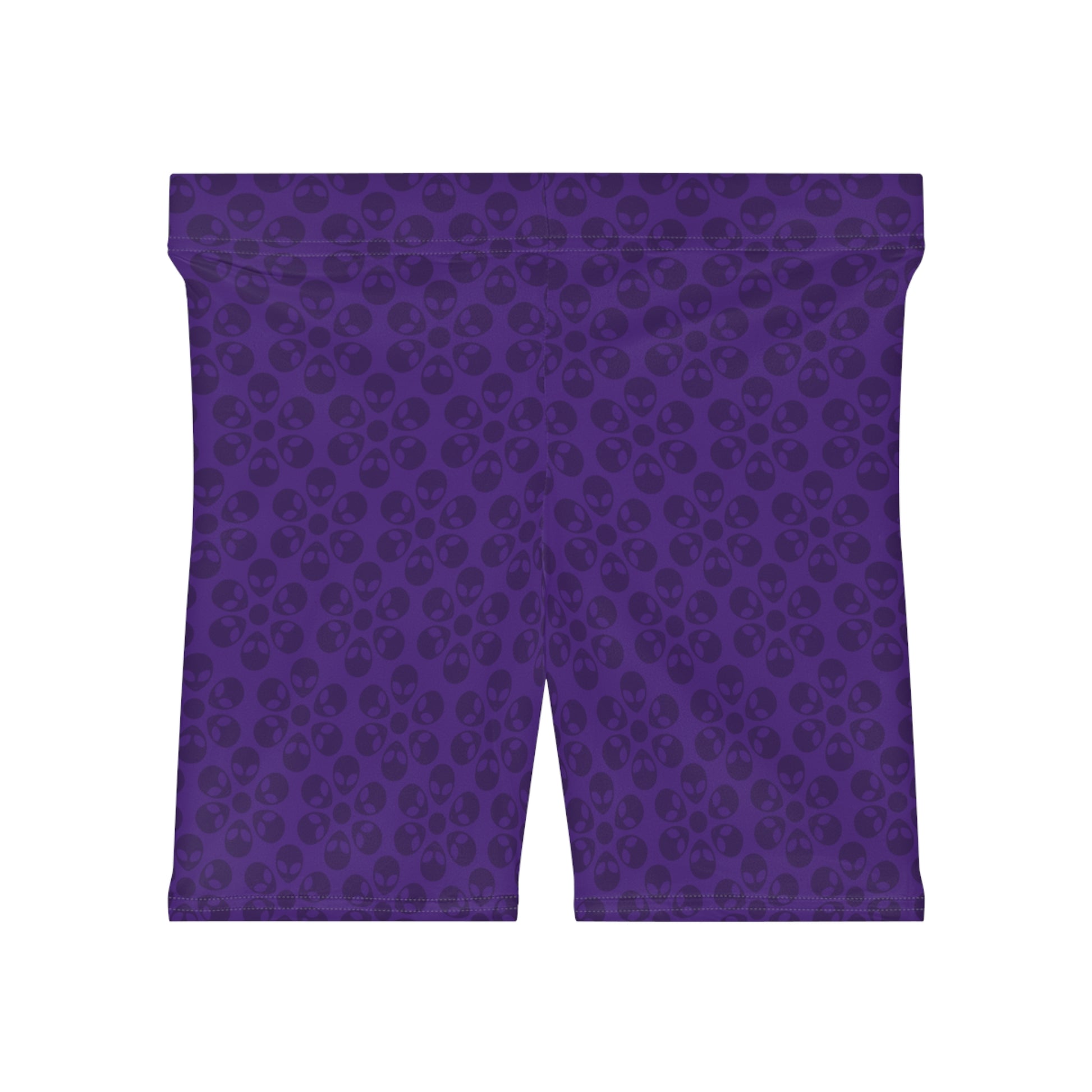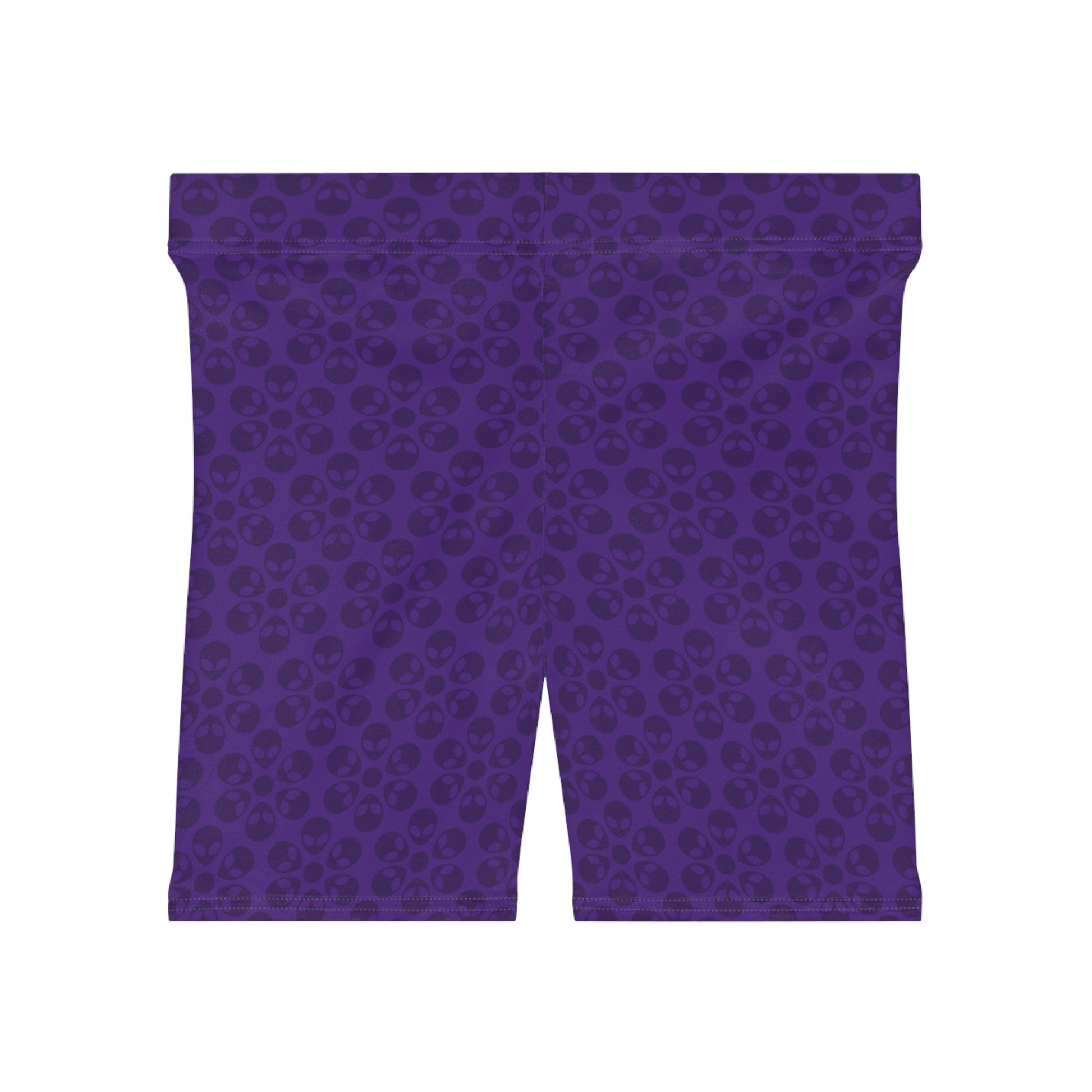 Womens Alien Pattern Biker Shorts Trendy Activewear Casual Cycling Shorts Festival Outfit Summer Essentials Alien Flowers Purple