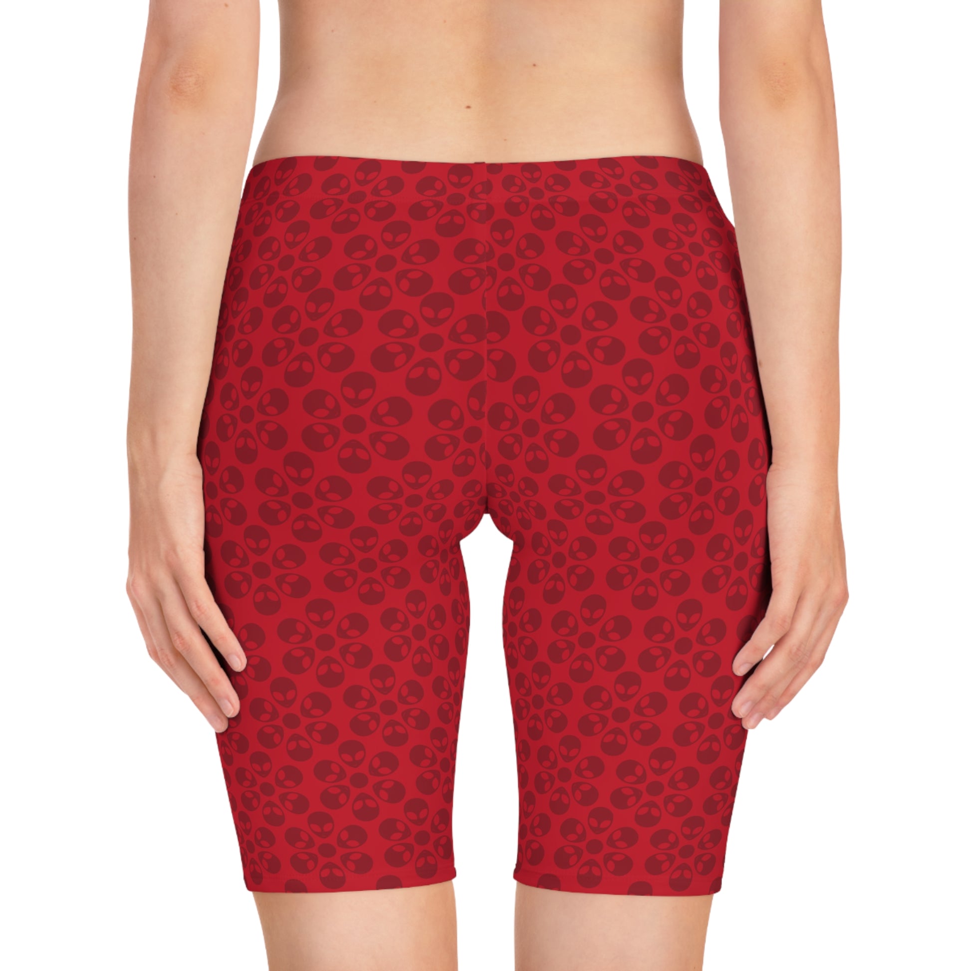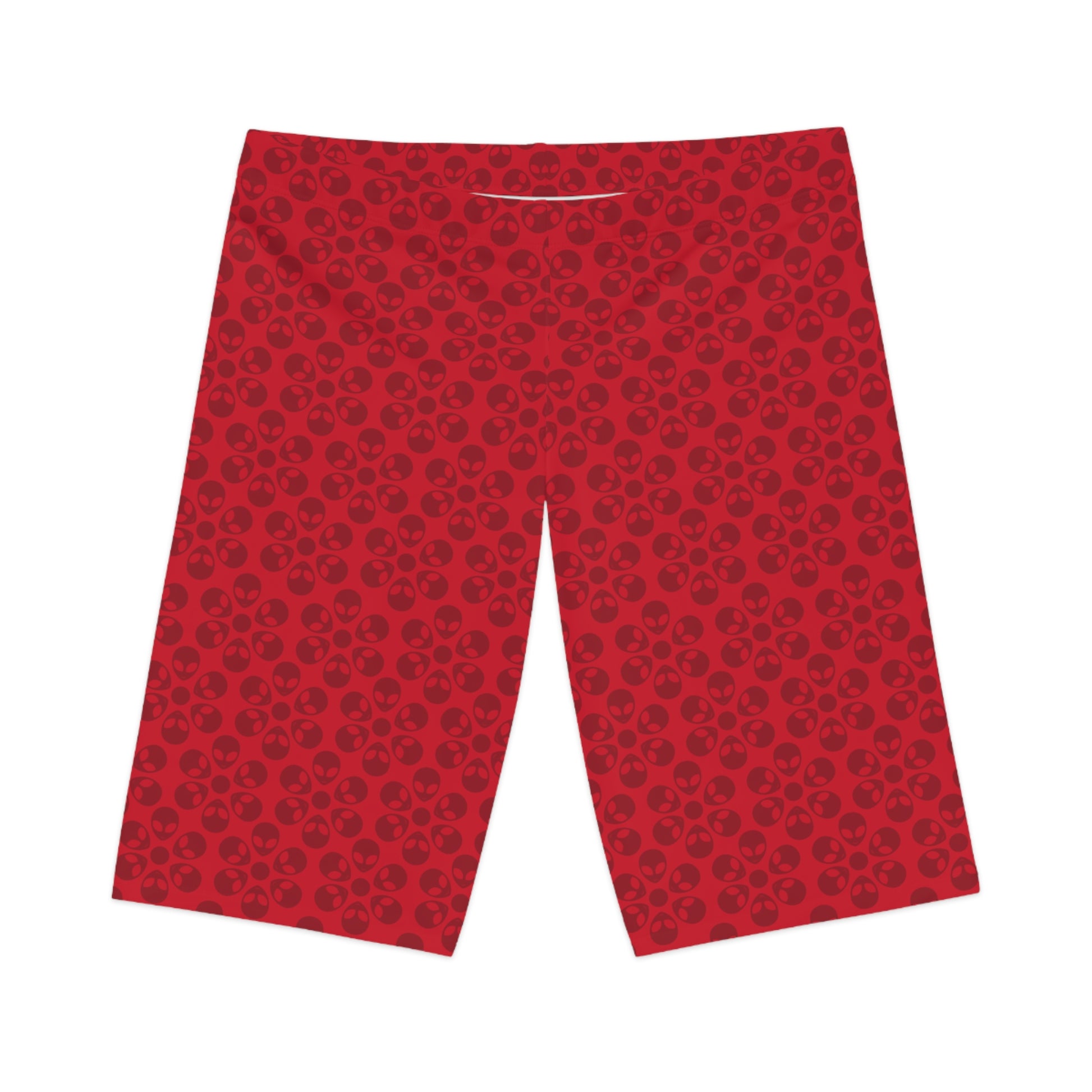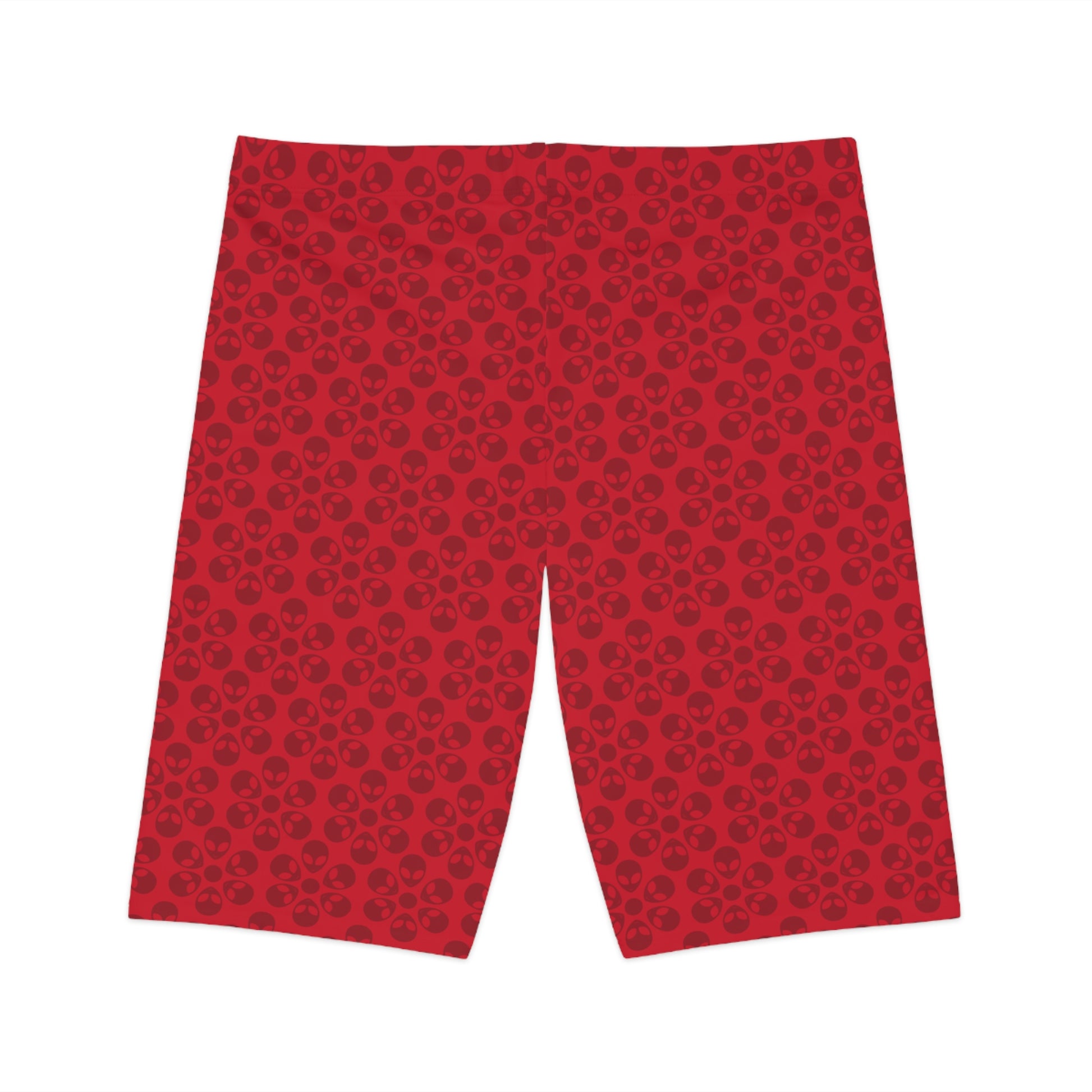 Womens Bike Shorts Alien Flowers Dark Red