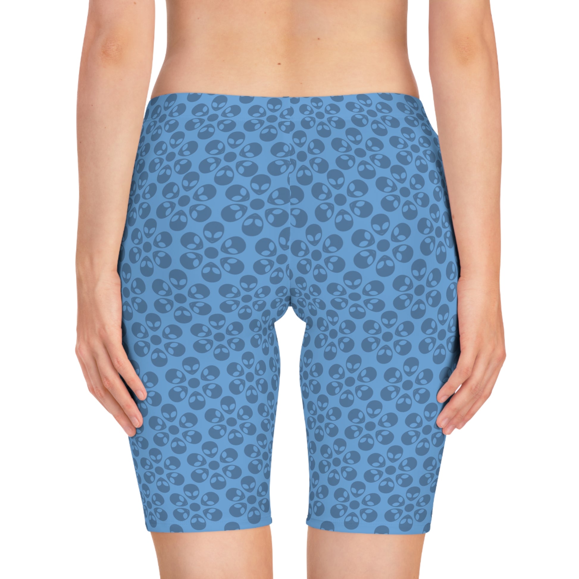 Womens Bike Shorts Alien Flowers Light Blue