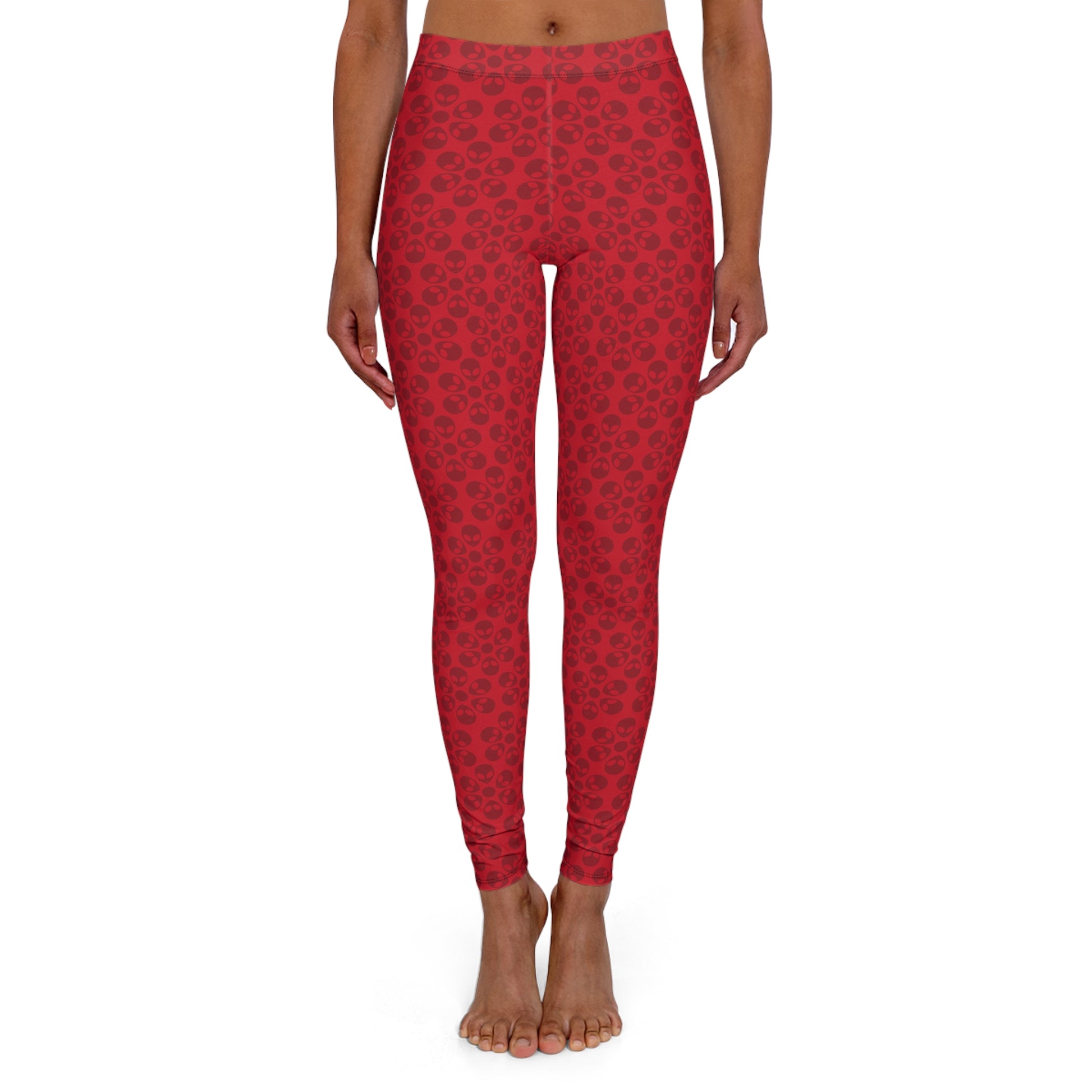 Womens Casual Spandex Leggings Alien Flowers Dark Red