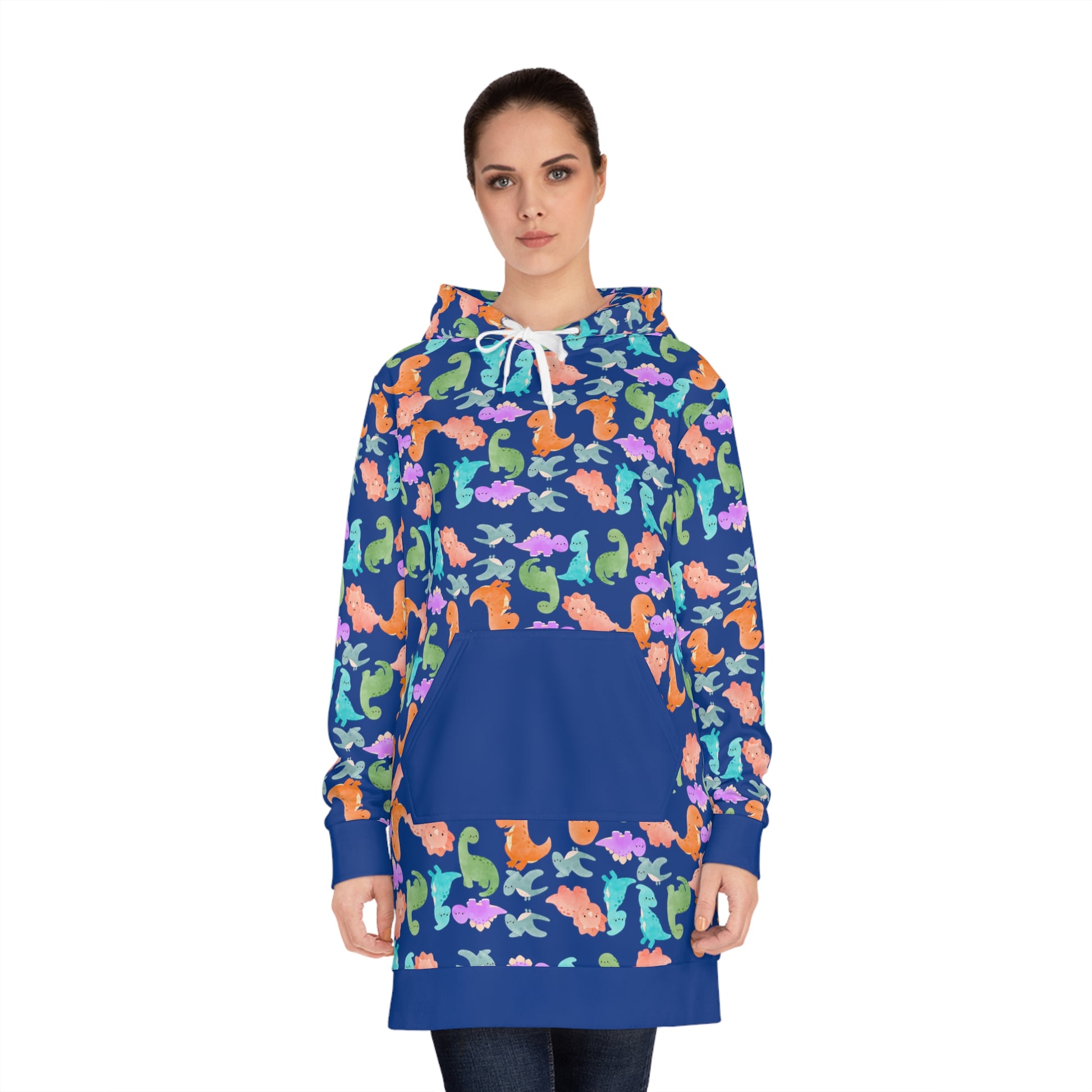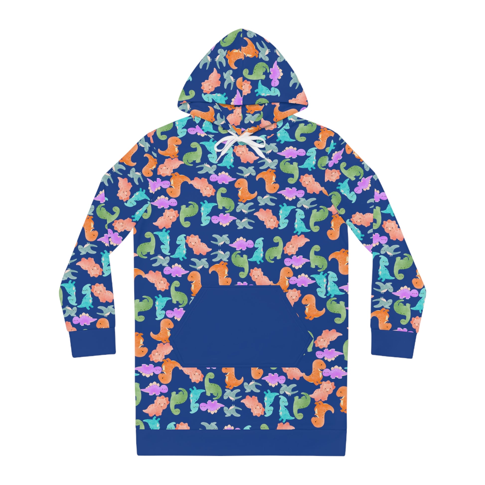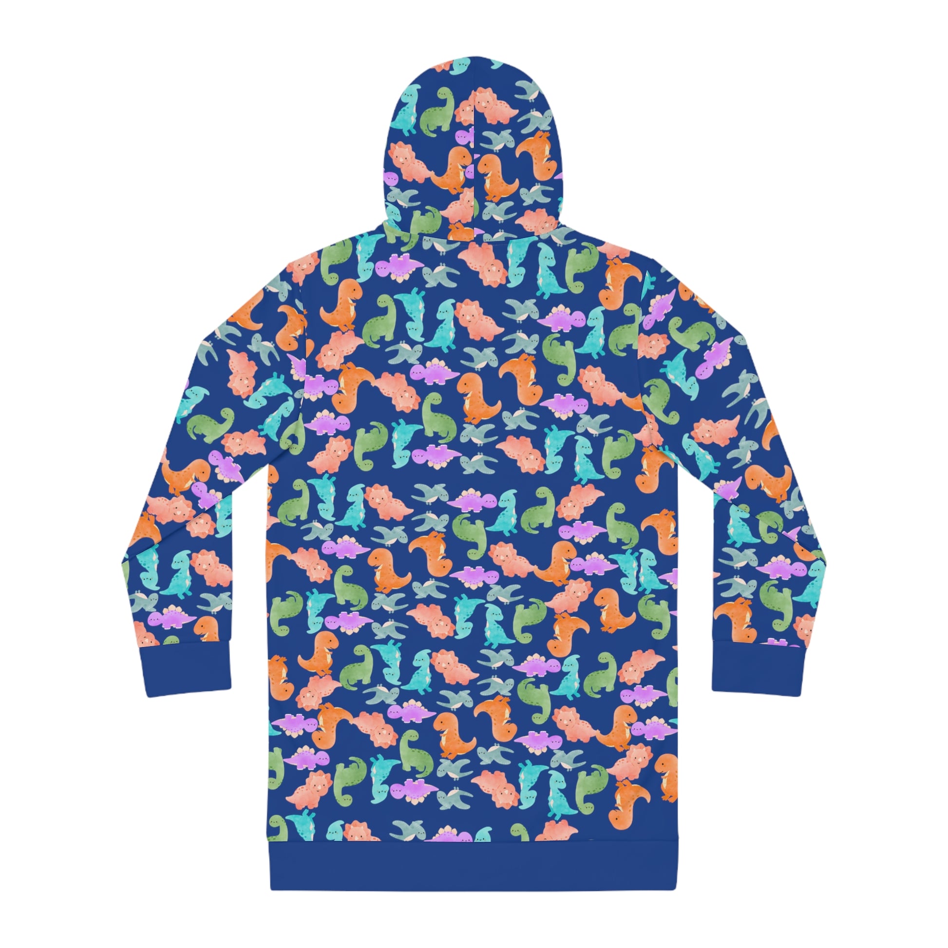 Womens Hoodie Dress Rainbow Dinos Dark Blue