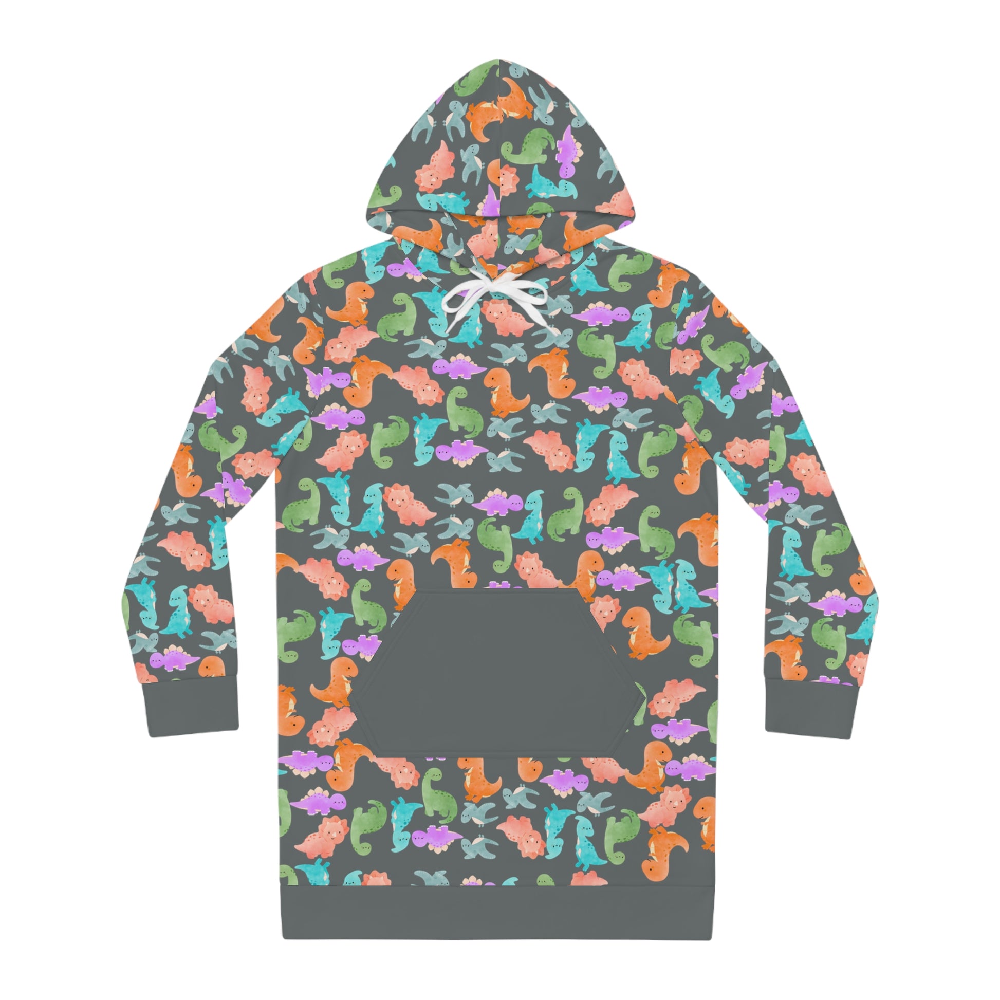 Womens Hoodie Dress Rainbow Dinos Dark Grey