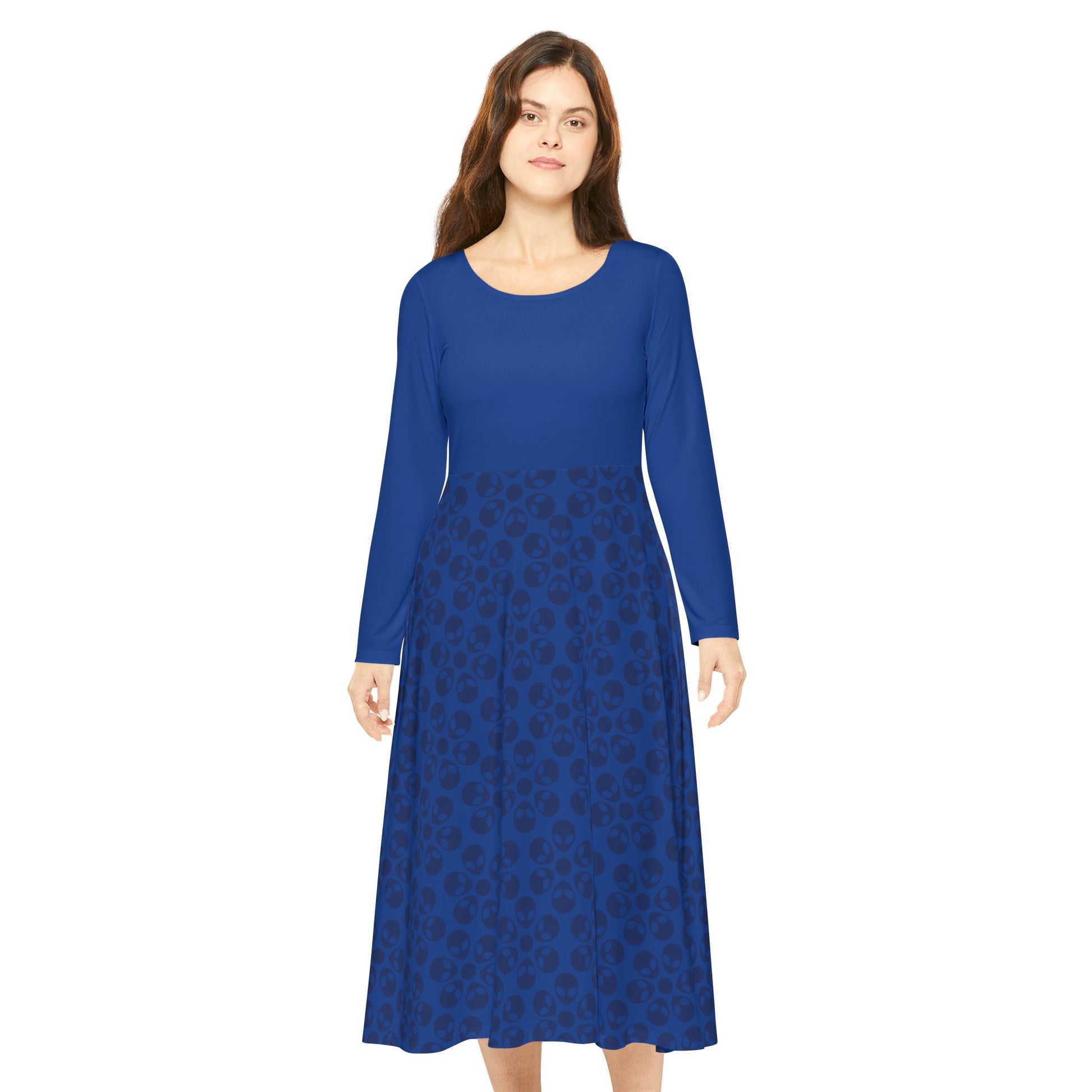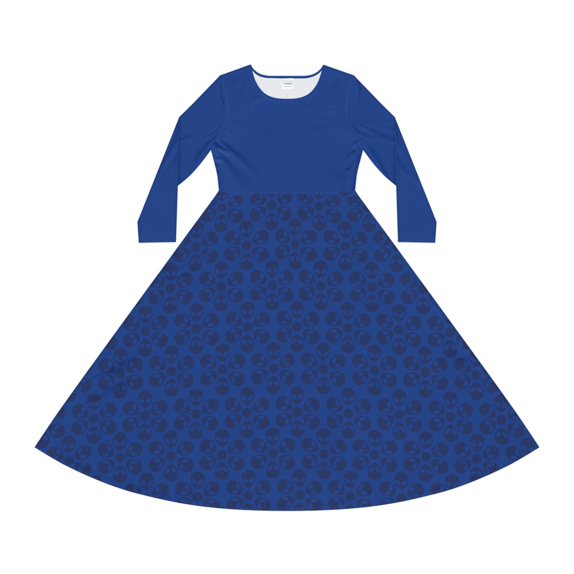 Womens Long Sleeve Dance Dress Alien Flowers Dark Blue
