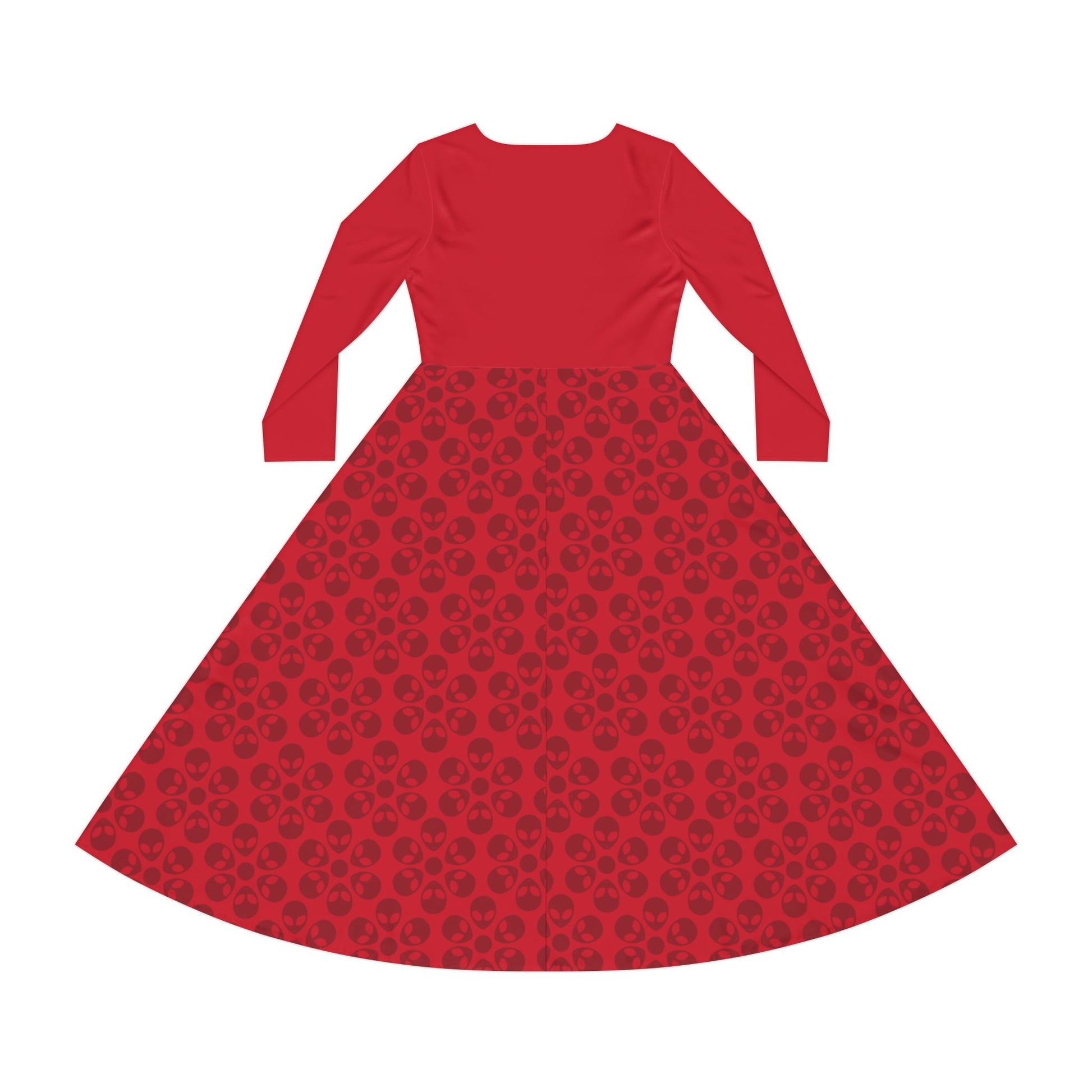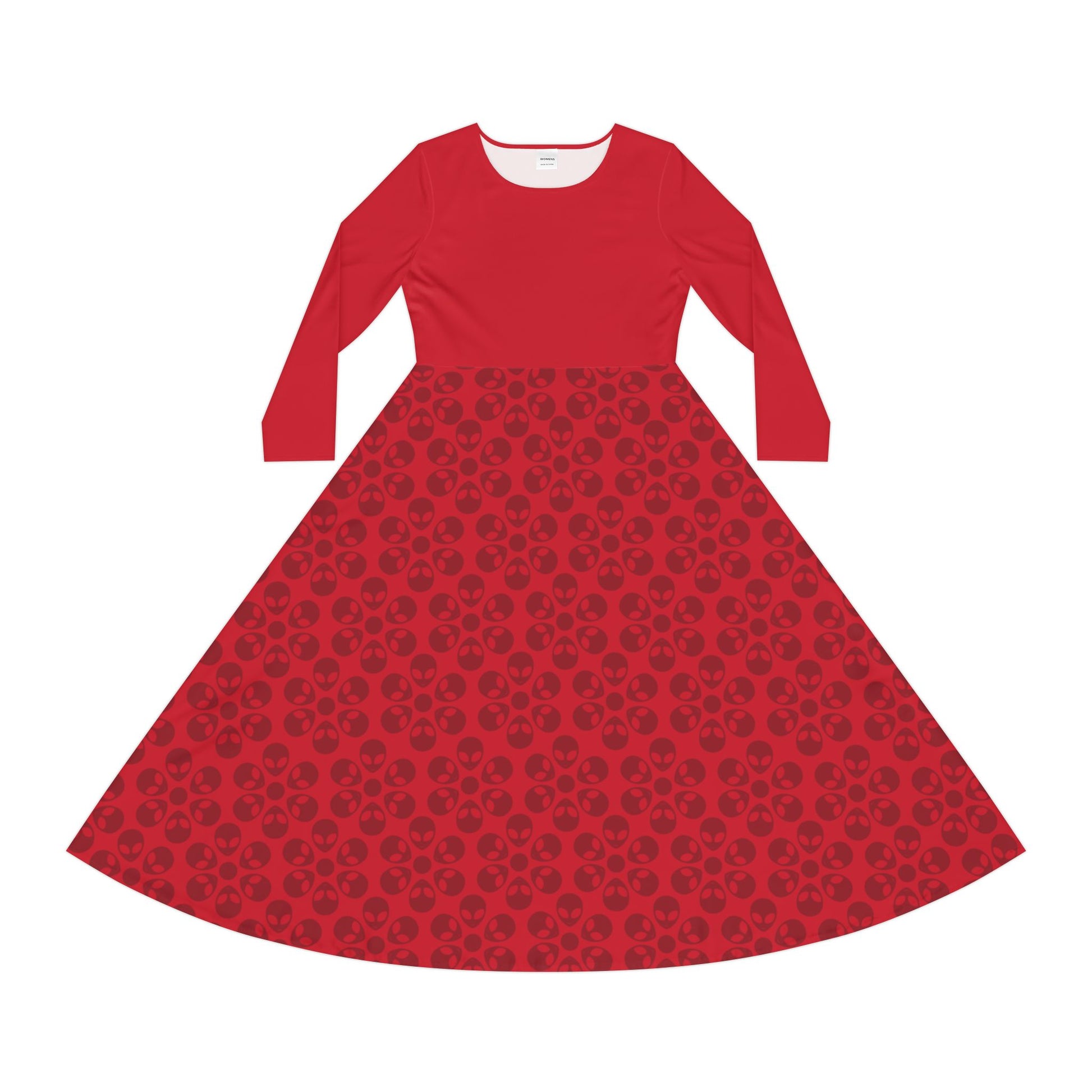 Womens Long Sleeve Dance Dress Alien Flowers Dark Red