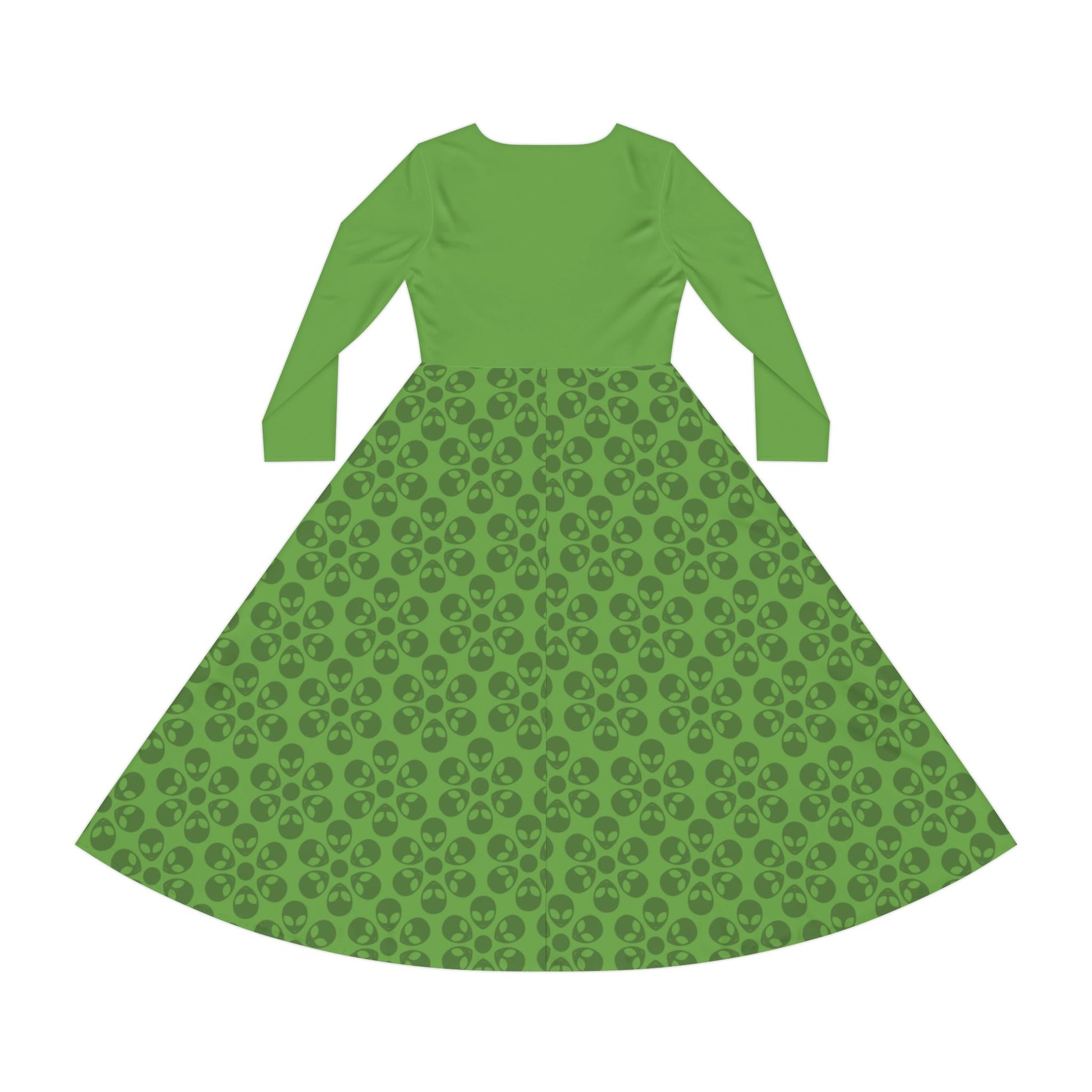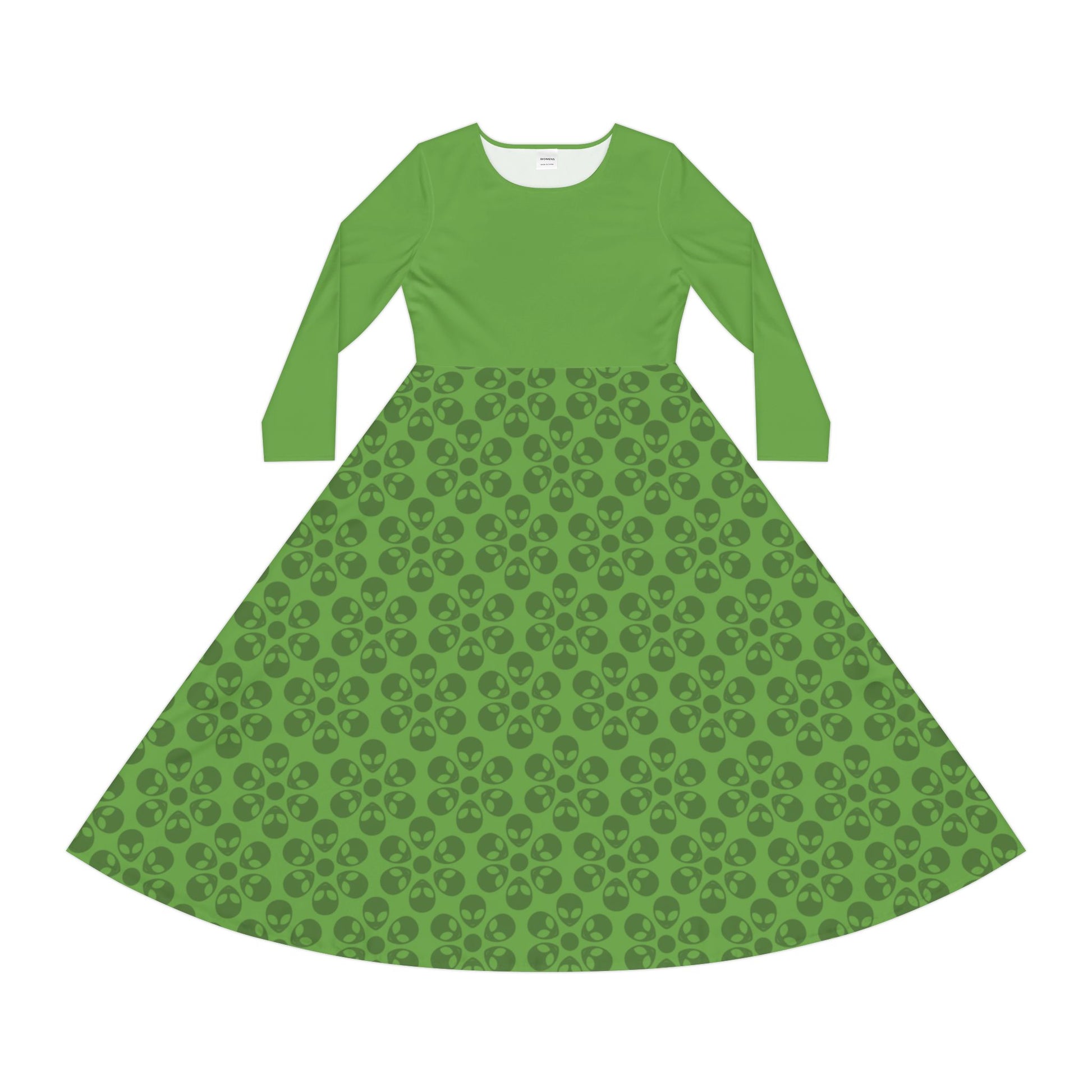 Womens Long Sleeve Dance Dress Alien Flowers Green