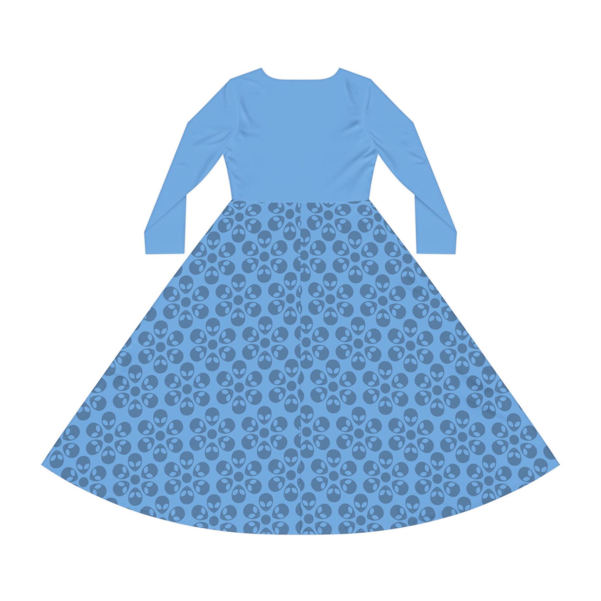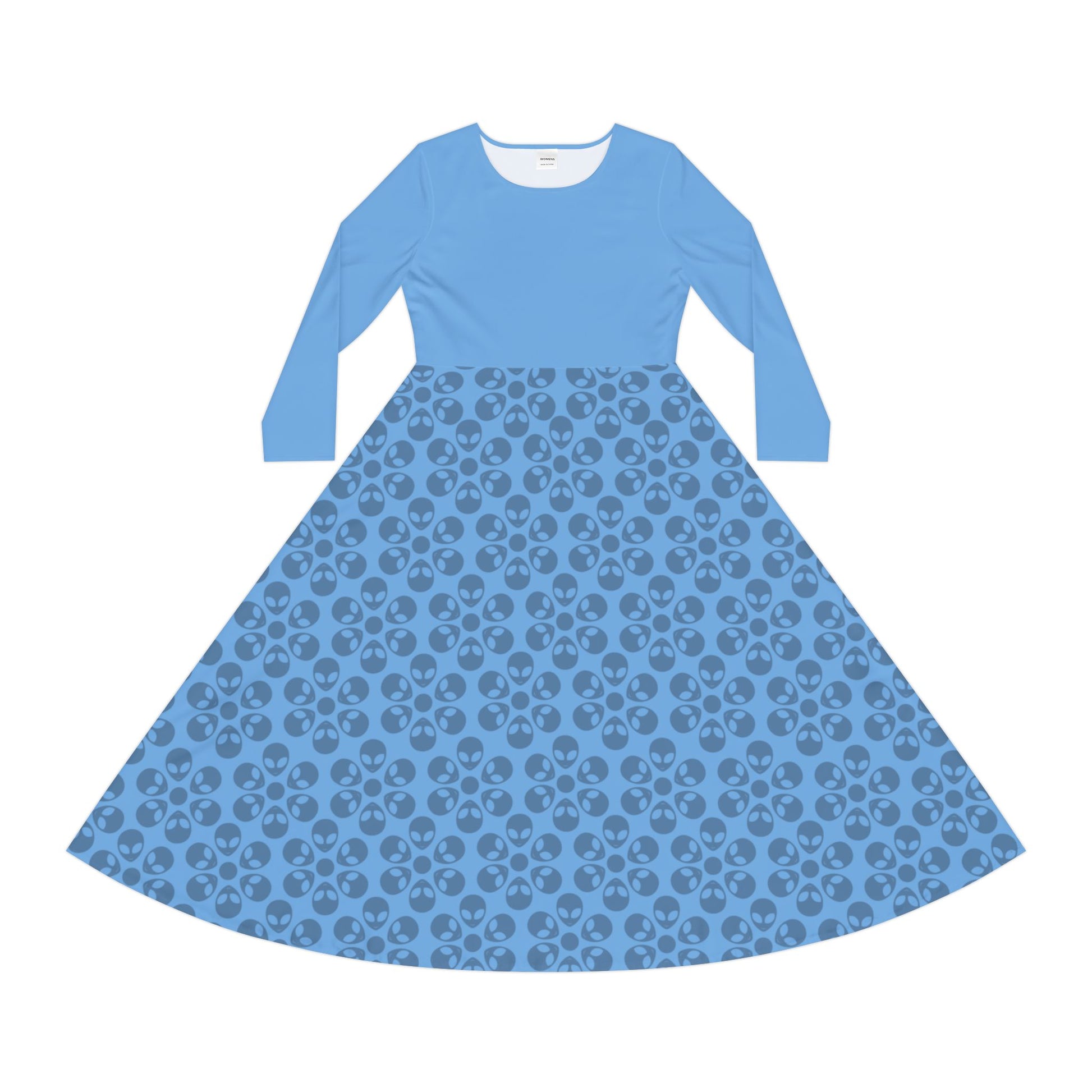 Womens Long Sleeve Dance Dress Alien Flowers Light Blue
