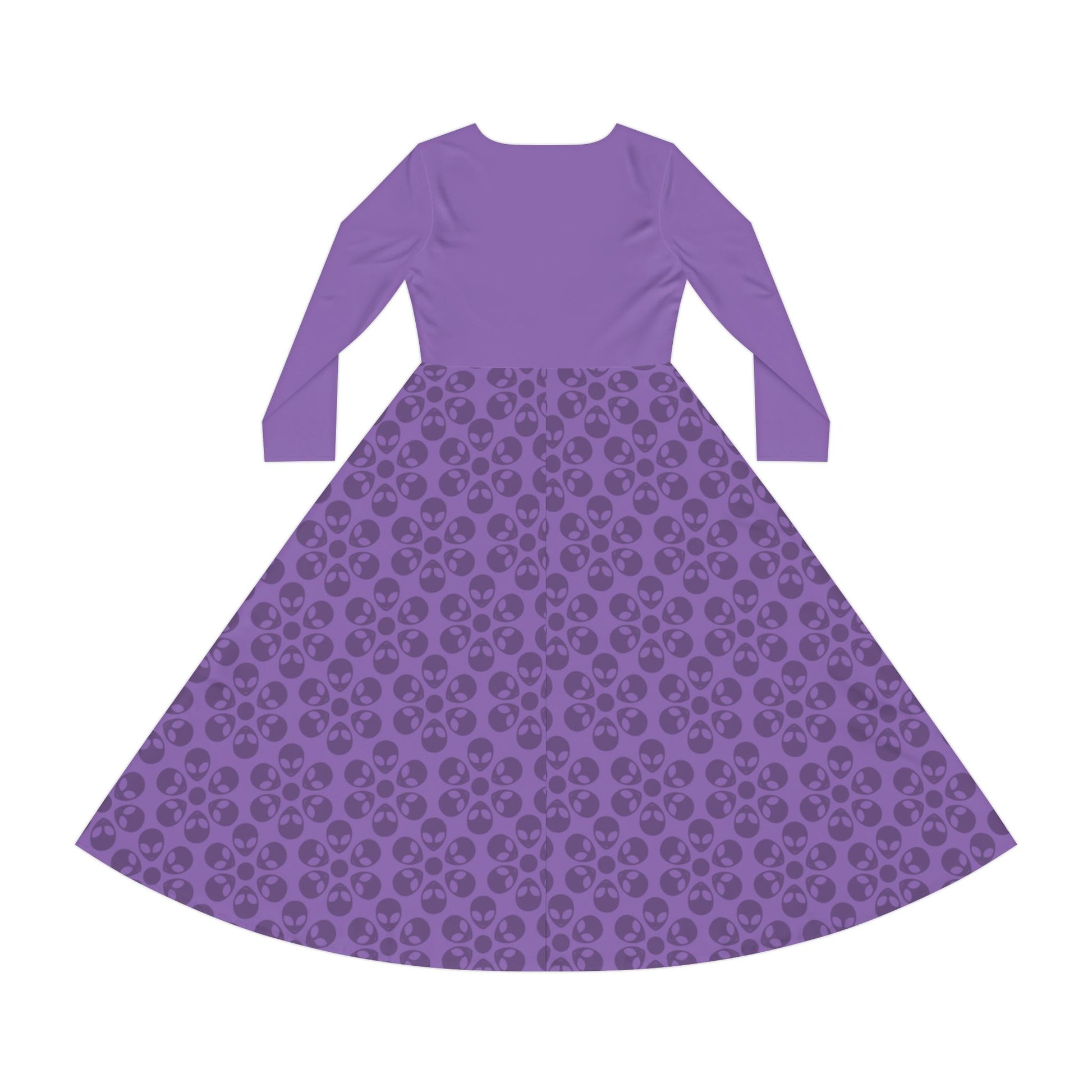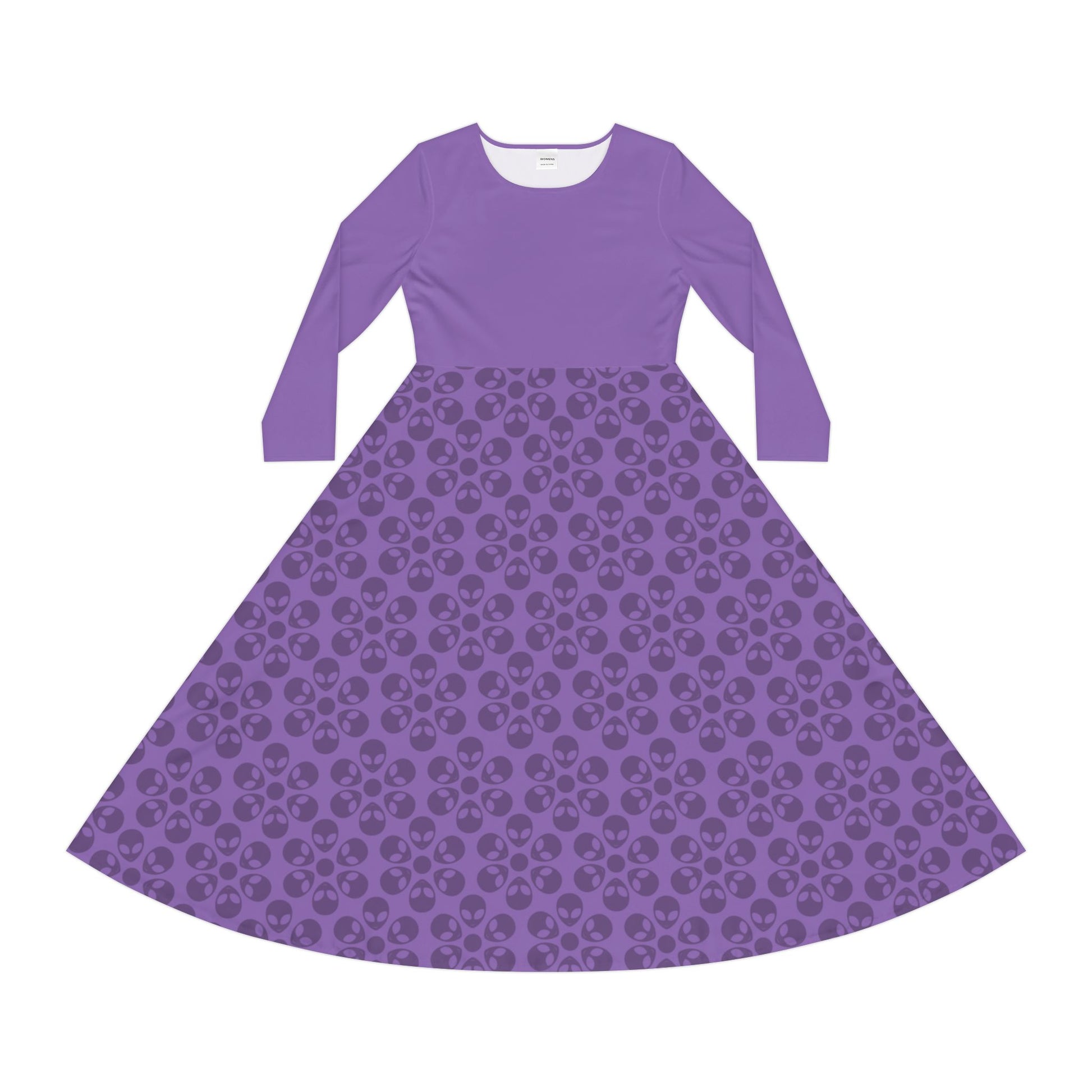 Womens Long Sleeve Dance Dress Alien Flowers Light Purple