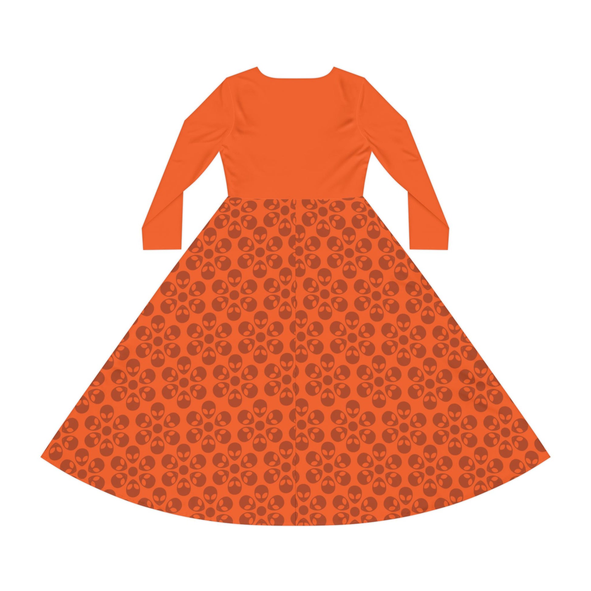 Womens Long Sleeve Dance Dress Alien Flowers Orange