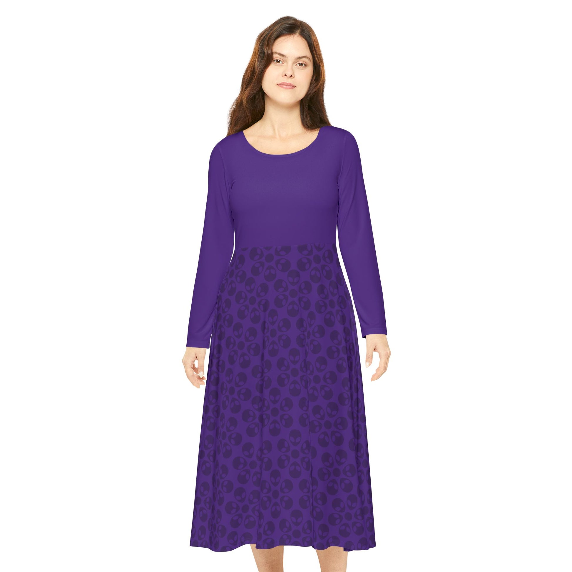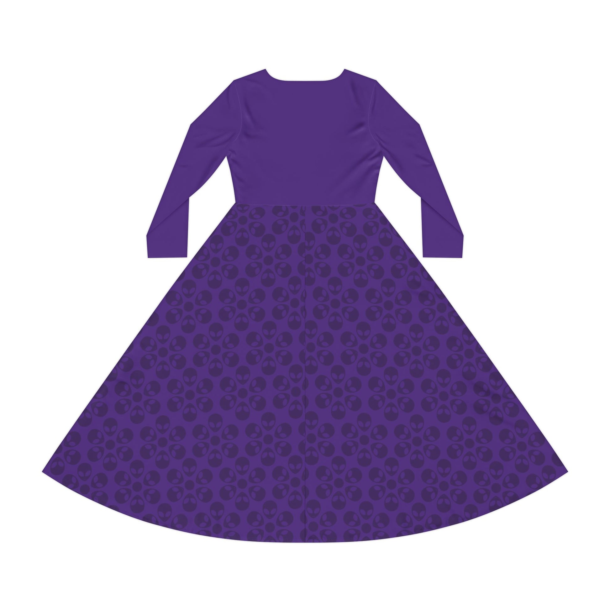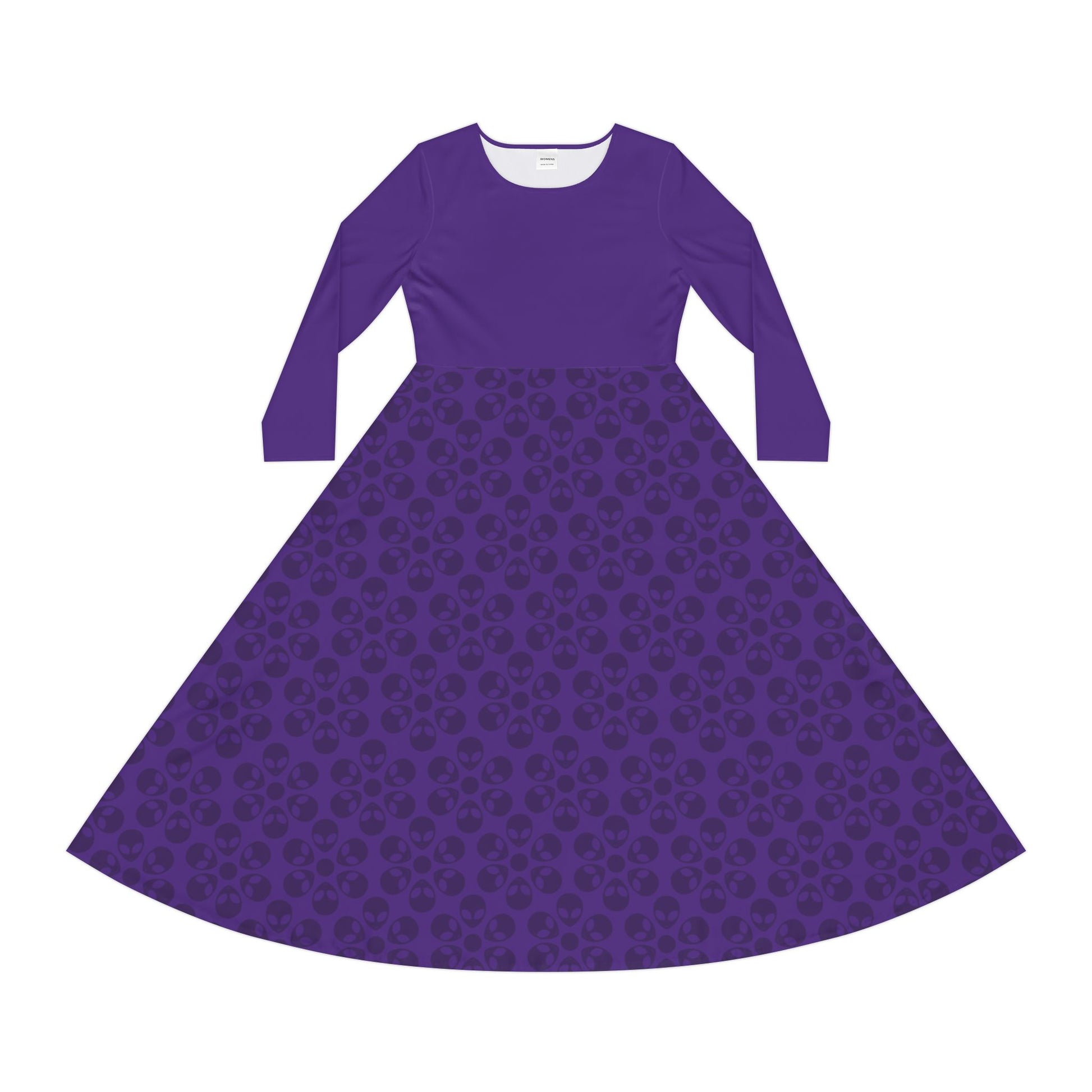 Womens Long Sleeve Dance Dress Alien Flowers Purple