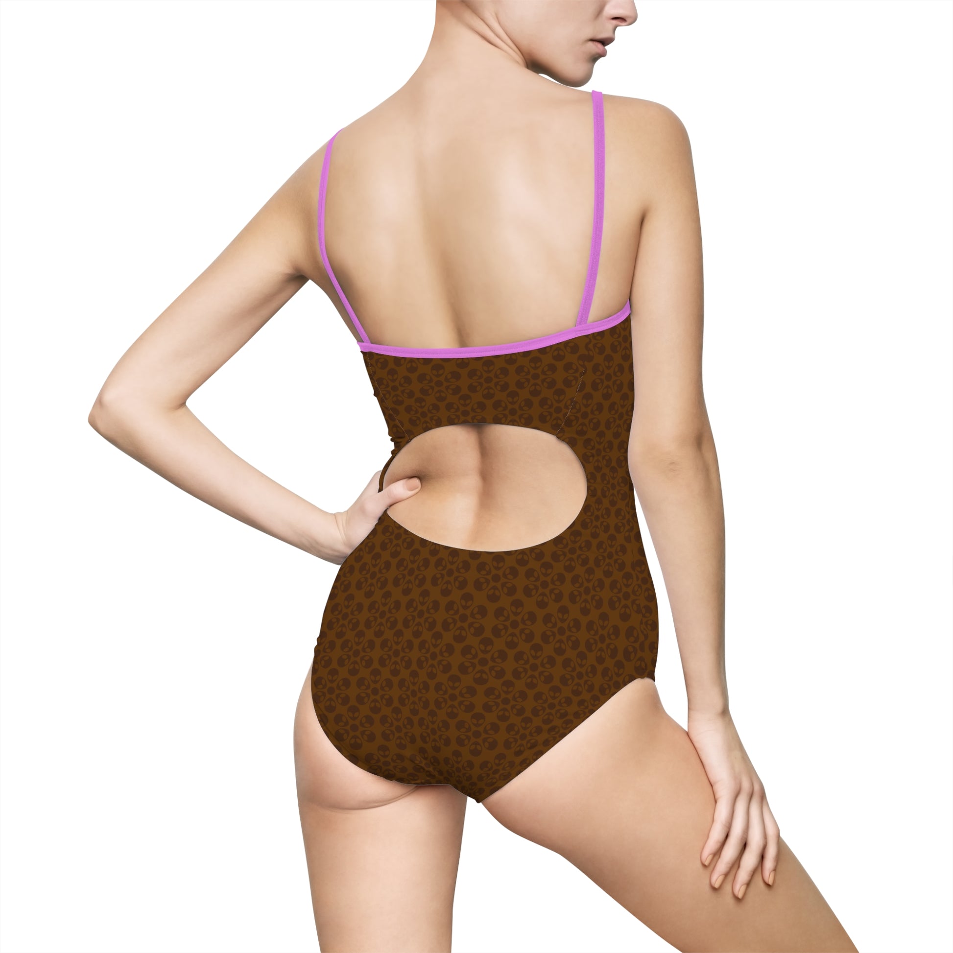 Womens Onepiece Swimsuit Alien Flowers Brown