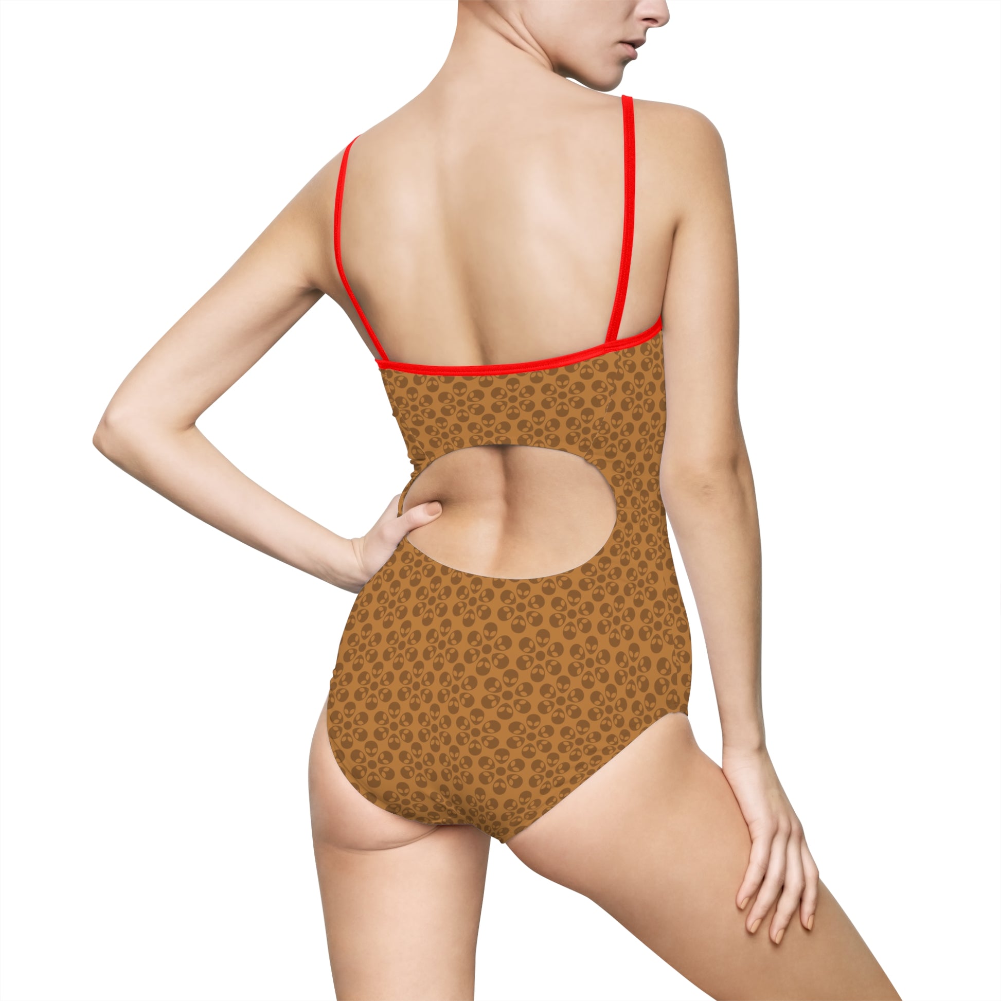 Womens Onepiece Swimsuit Alien Flowers Light Brown