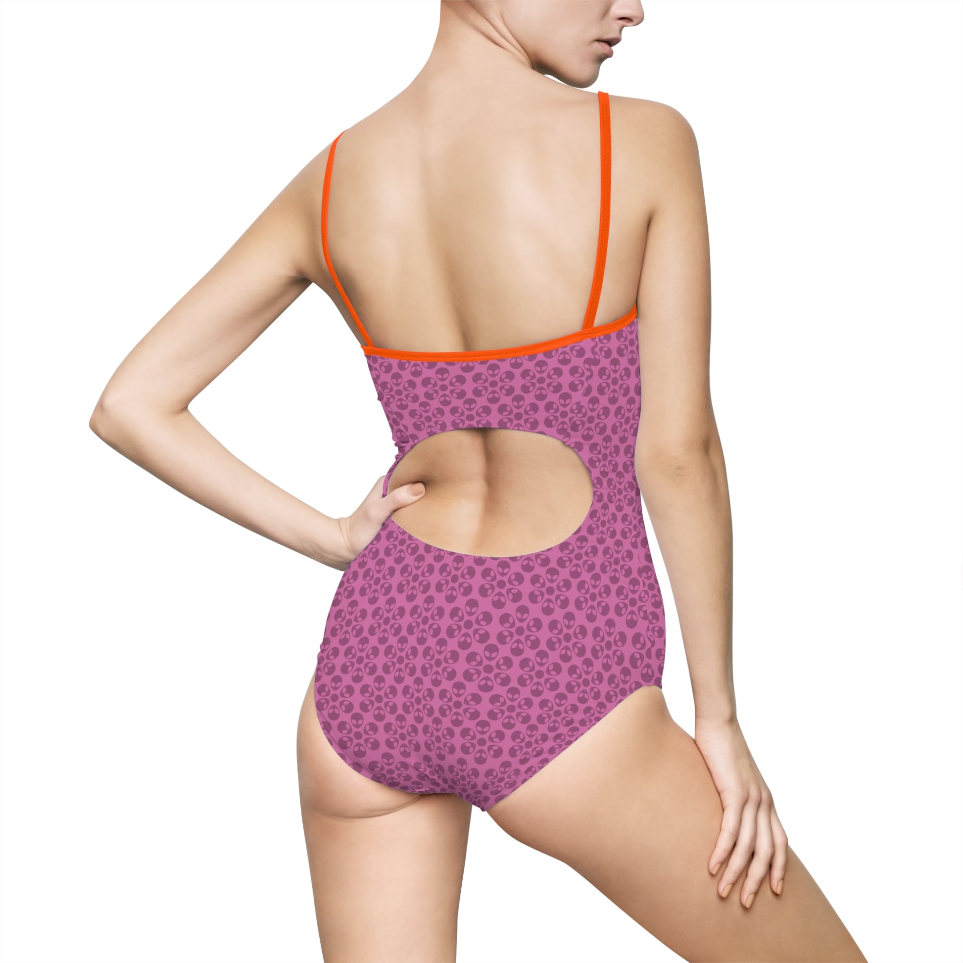 Womens Onepiece Swimsuit Alien Flowers Light Pink