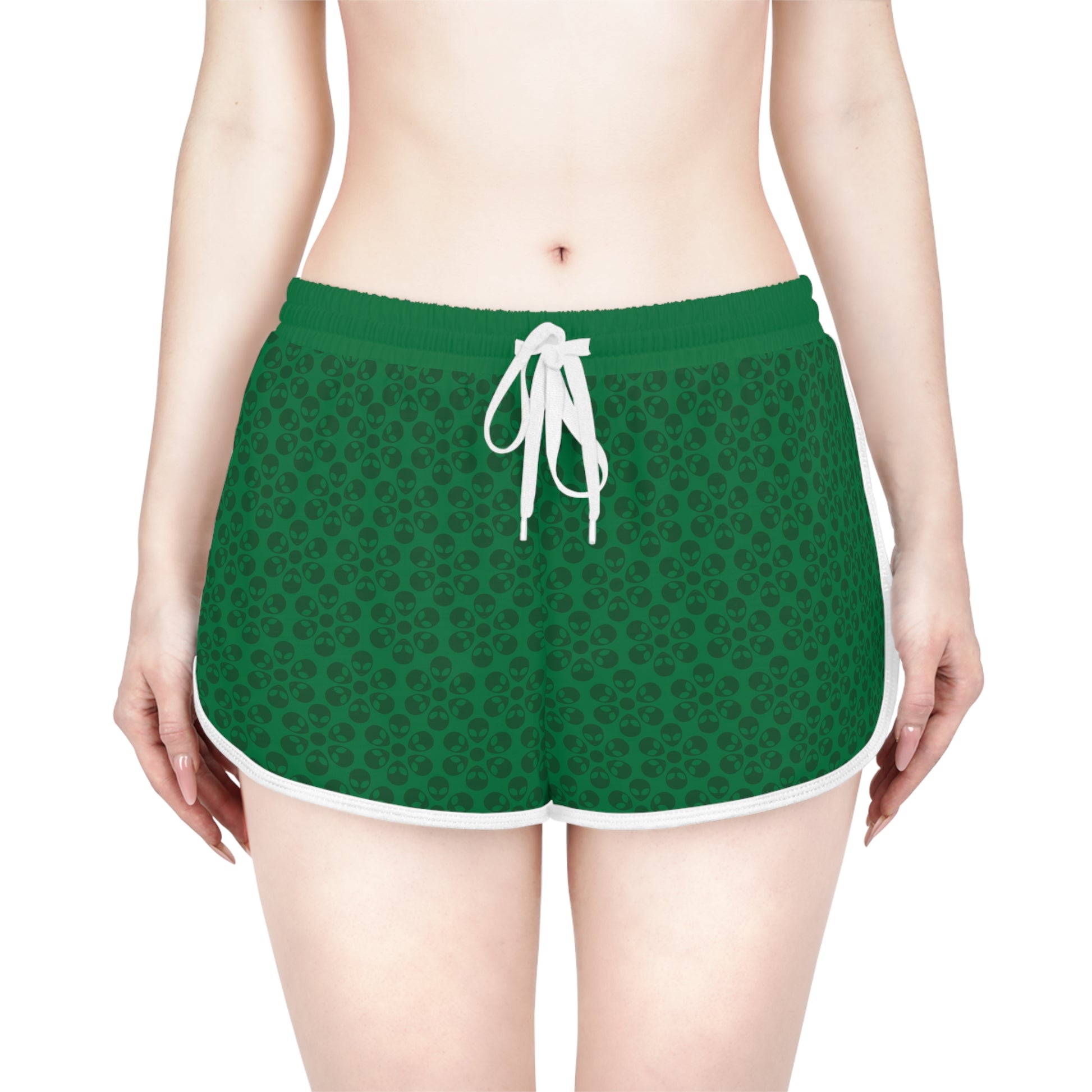 Womens Relaxed Shorts Alien Flowers Dark Green