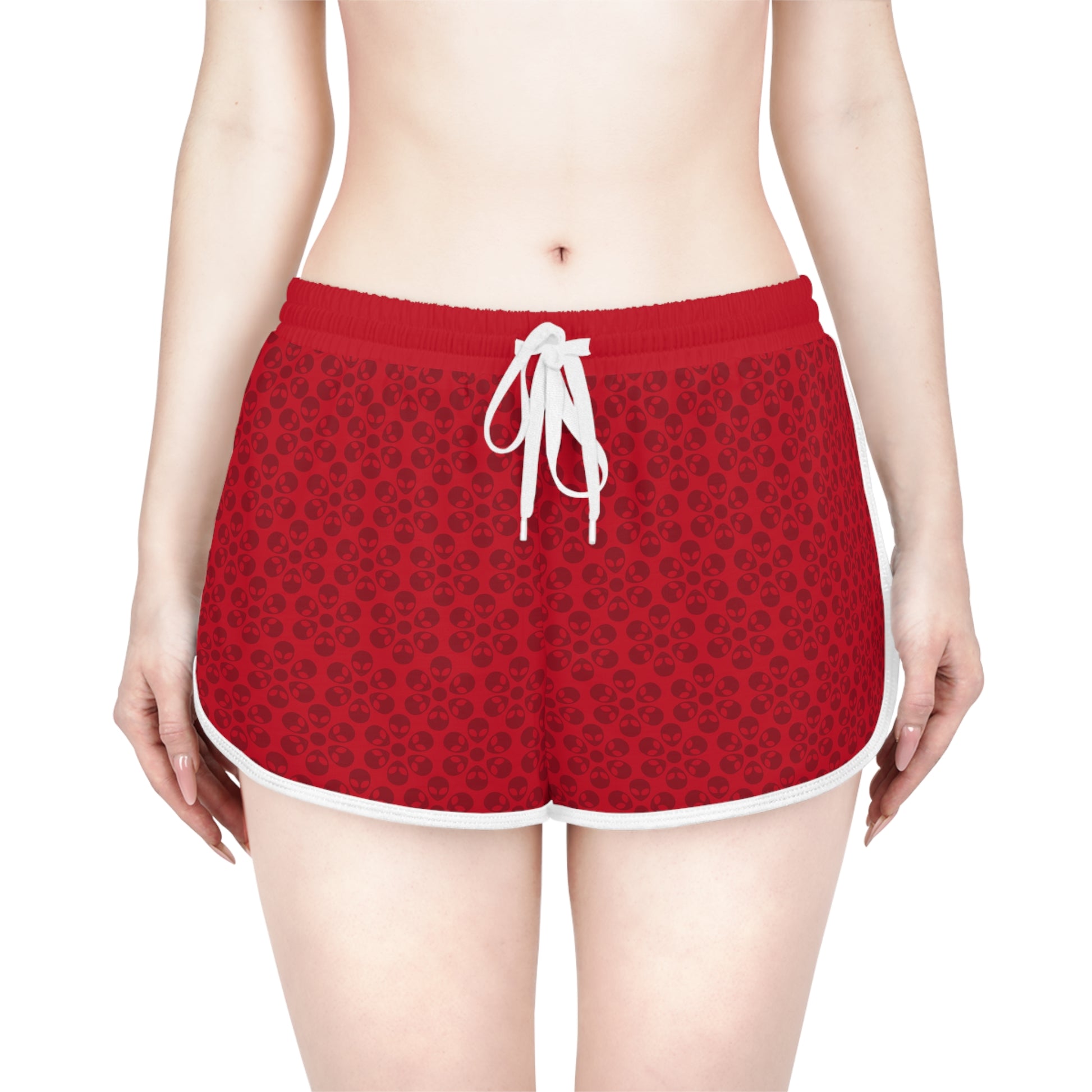 Womens Relaxed Shorts Alien Flowers Dark Red