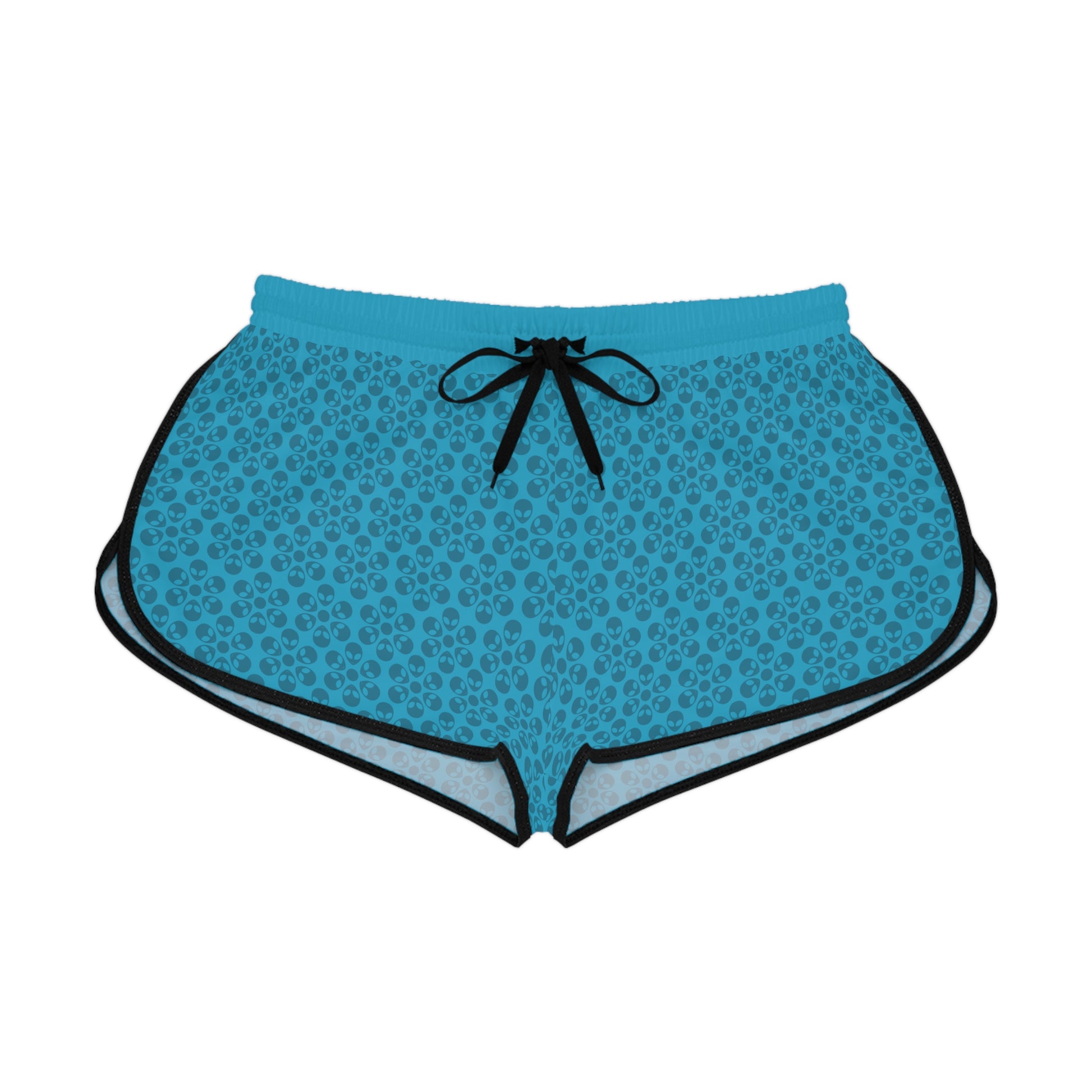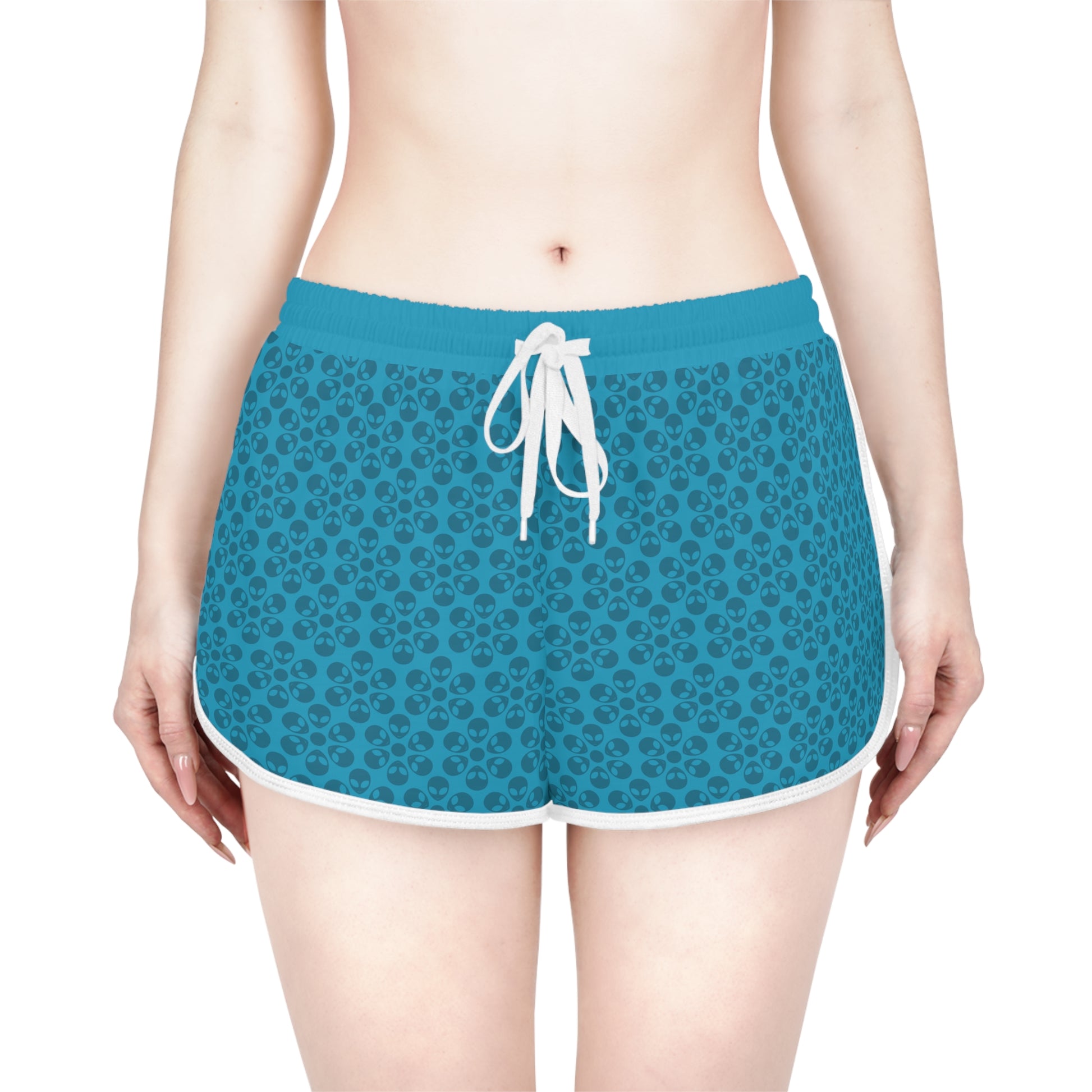Womens Relaxed Shorts Alien Flowers Turquoise