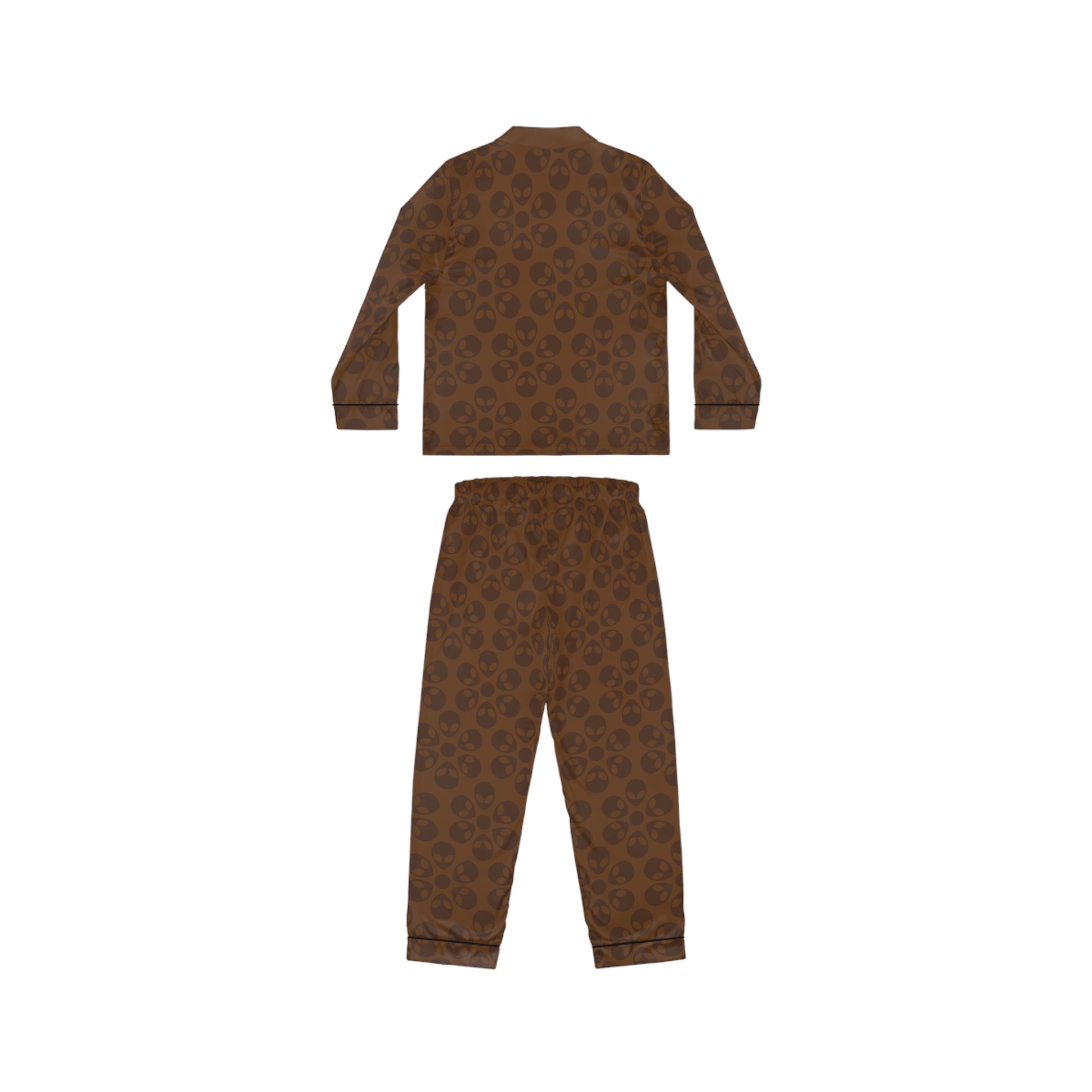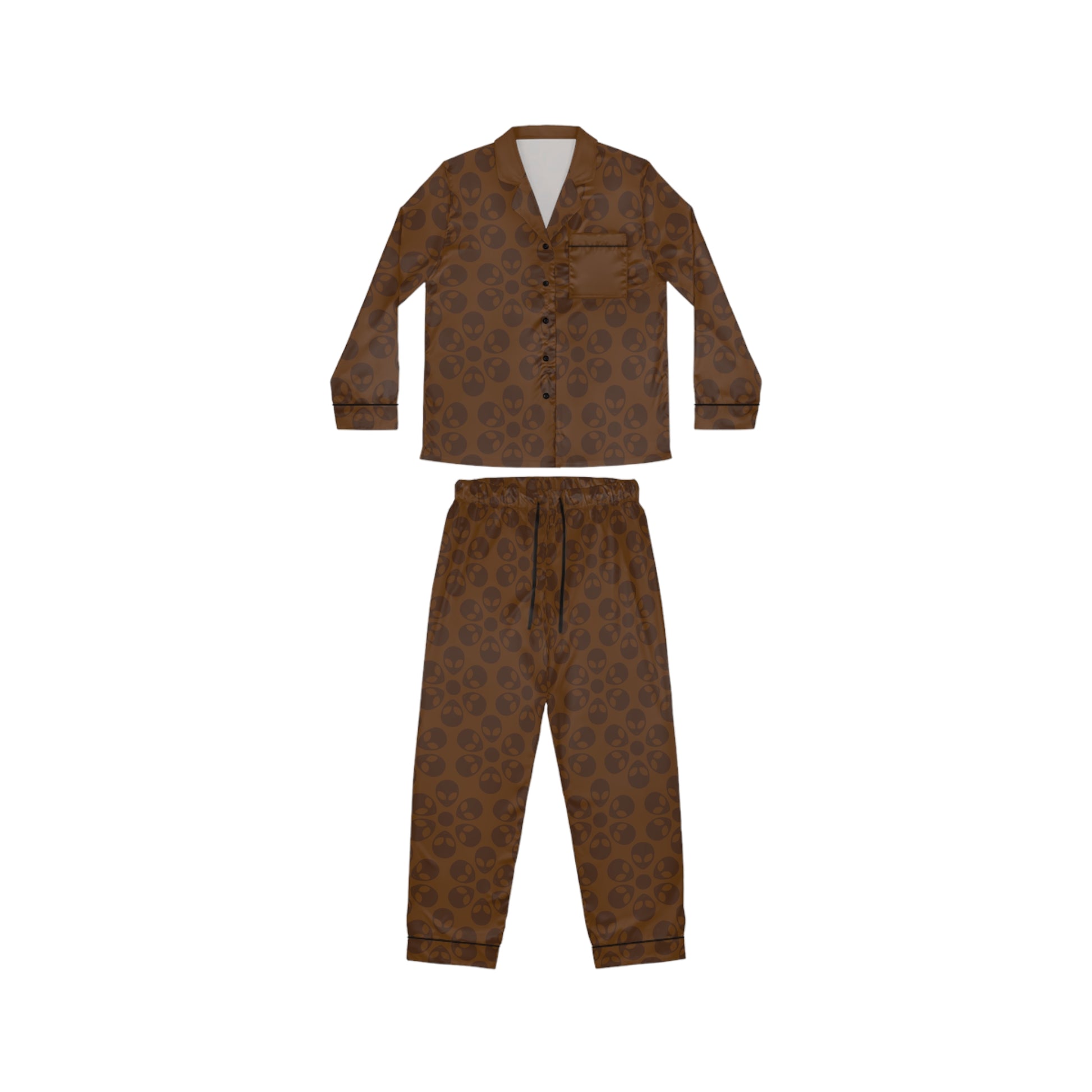 Womens Satin Pajamas Alien Flowers Brown