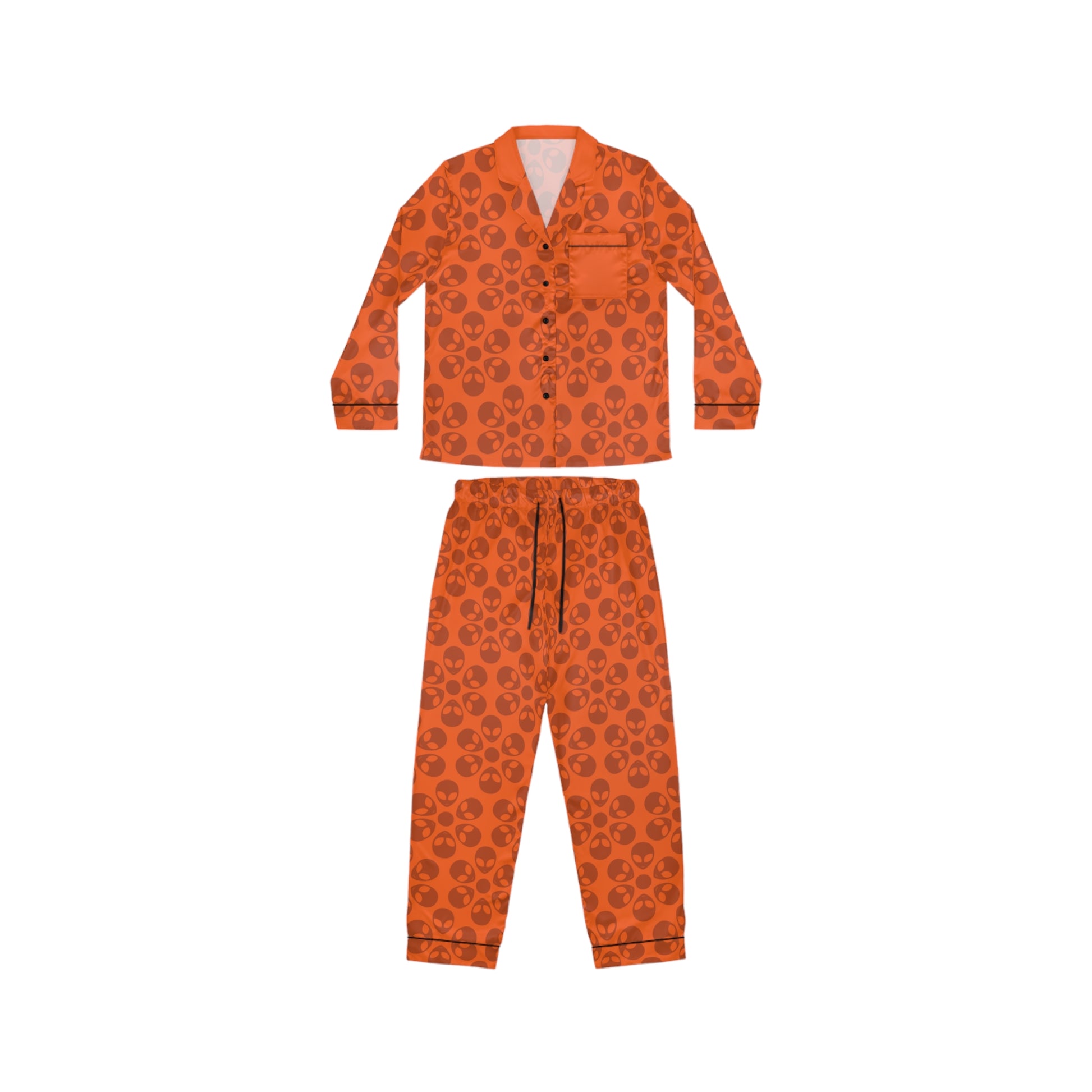 Womens Satin Pajamas Alien Flowers Orange