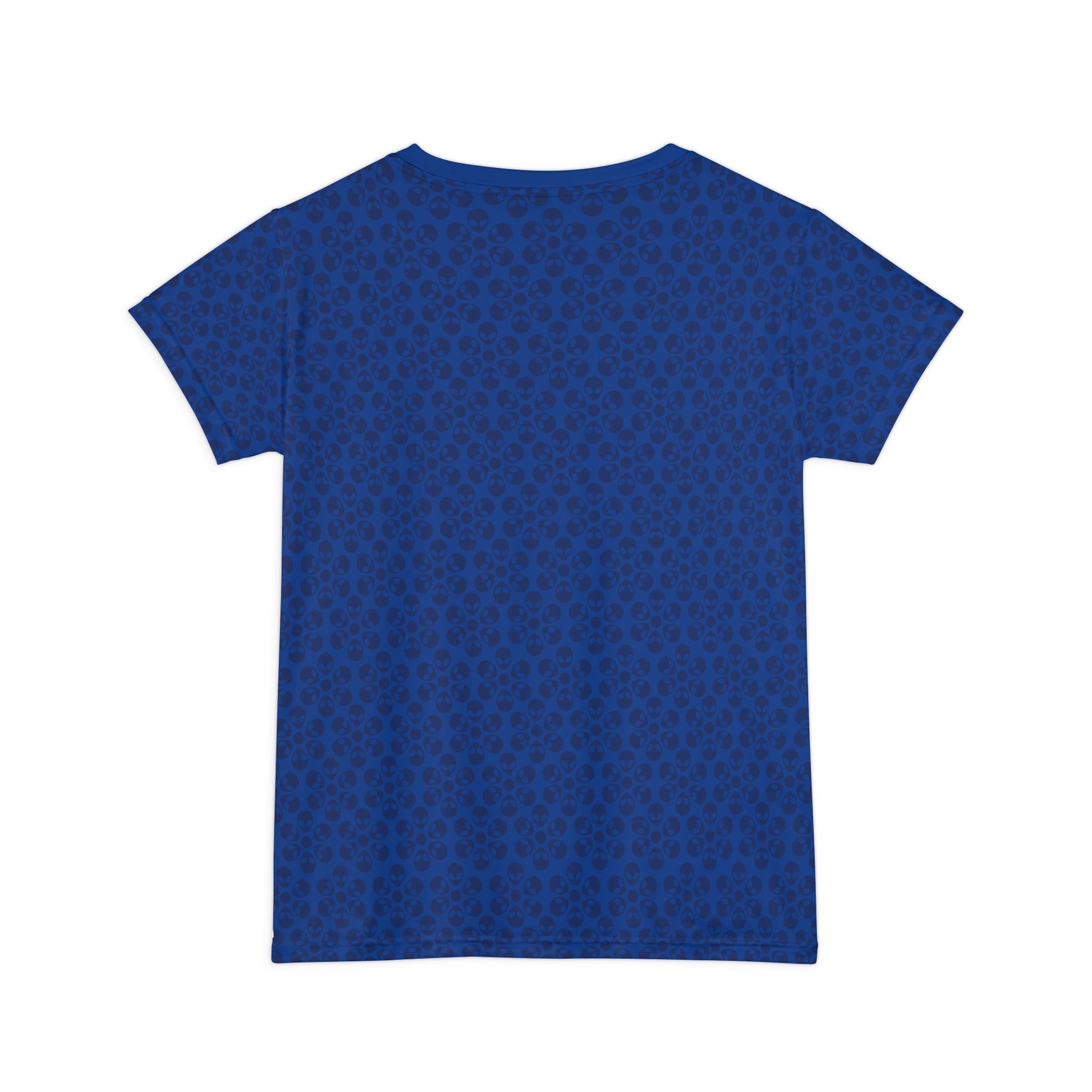 Womens Short Sleeve Shirt Alien Flowers Dark Blue