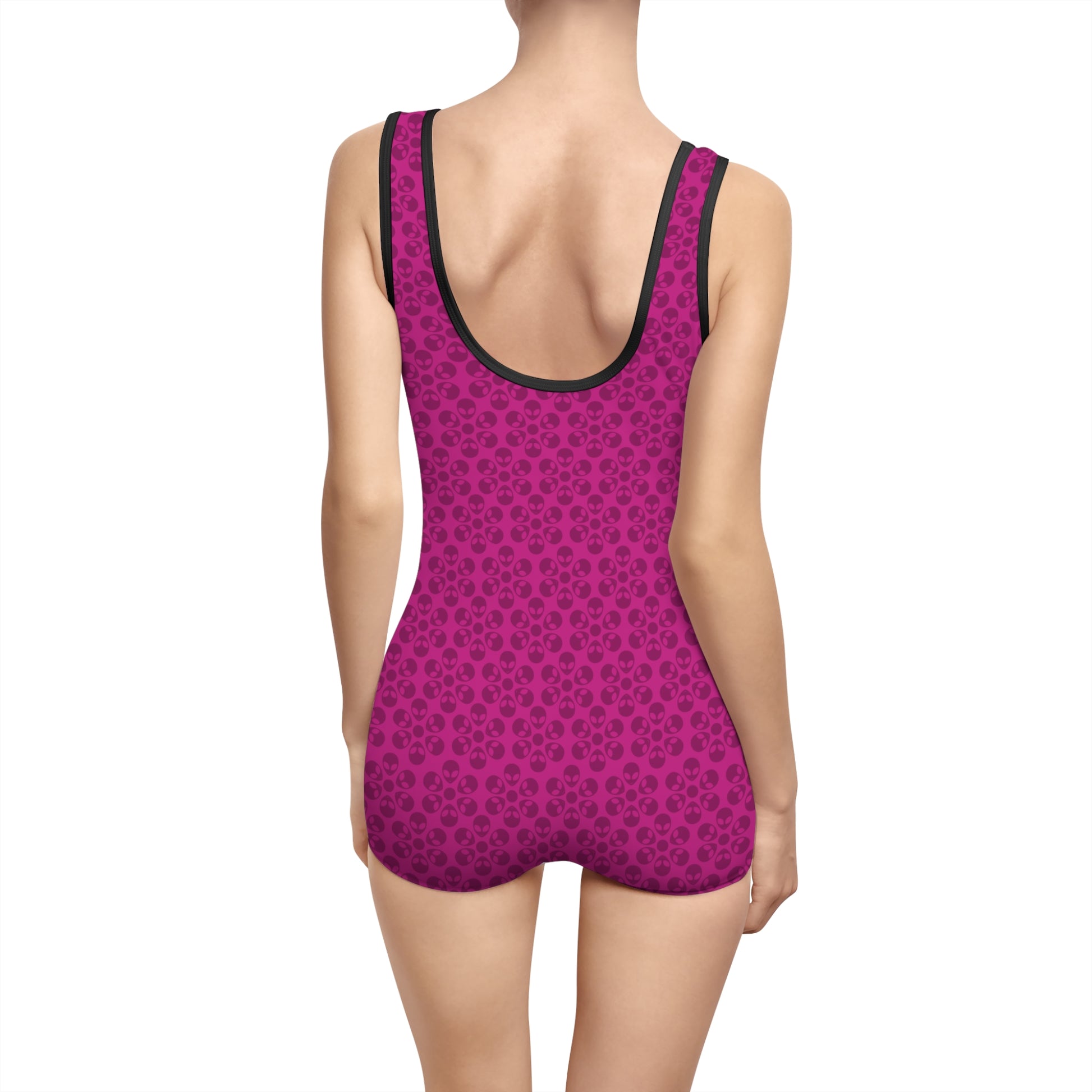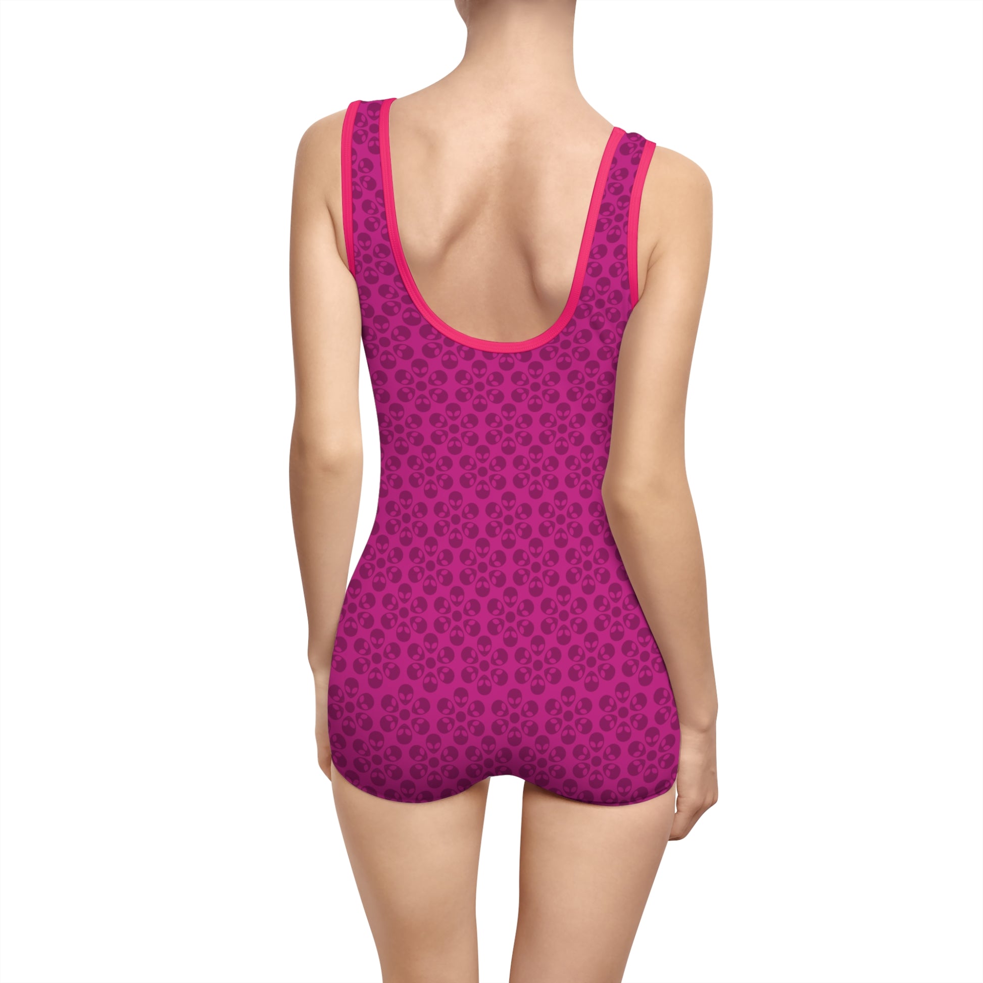 Womens Vintage Swimsuit Alien Flowers Pink